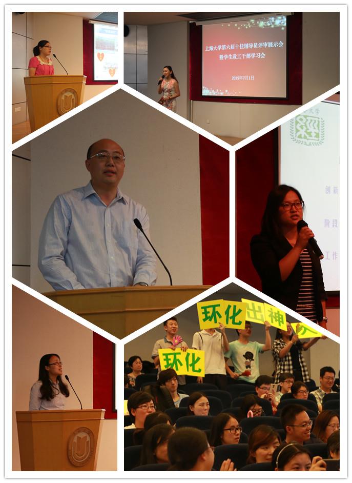 2015年7月1日上午,beat365英国官方网站第六届“十佳辅导员”评选展示会暨学生政工干部学习会在校本部行政楼报告厅举行。校党委副书记、副校长徐旭,党办副主任、机关党委书记钱峰,党委组织部副部长、党校常务副校长曹为民,党委宣传部部长李坚,党委研工部部长、研究生院副院长林海霞,监察处副处长温诚锋,人事处副处长王志敏,学工办主任胡大伟,团委书记、学工办副主任许烁出席活动并担任评委。
