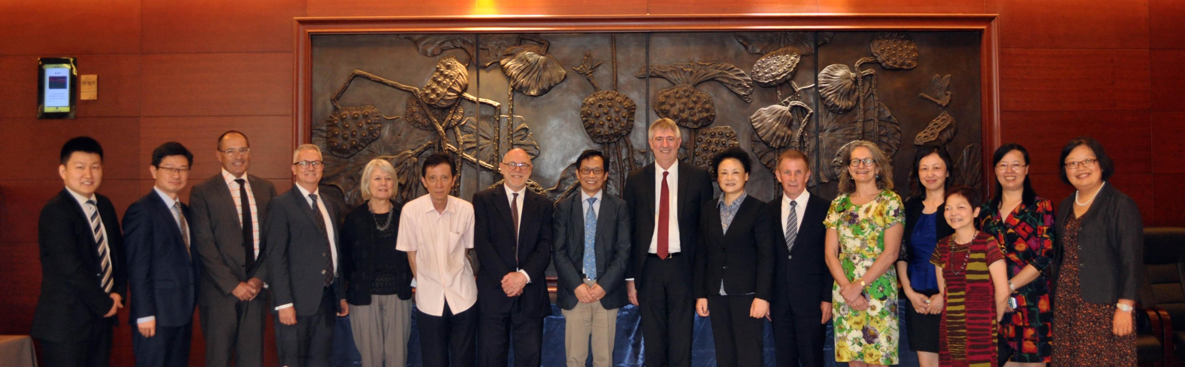 7月1日上午,悉尼科技大学(UTS)校长代表团18人一行访问了beat365英国官方网站,参加悉尼工商学院董事会及两校战略会议等一系列会议及活动。beat365英国官方网站党委副书记、副校长李友梅,副校长汪敏,副校长唐豪,校党委常委、悉尼工商学院院长龚思怡,国际事务处处长万旺根、后勤集团总经理梁亮、悉尼工商学院常务副院长吕康娟,管理学院副院长镇璐、经济学院副院长殷凤等领导和老师在乐乎新楼分别出席了相关会议及活动。