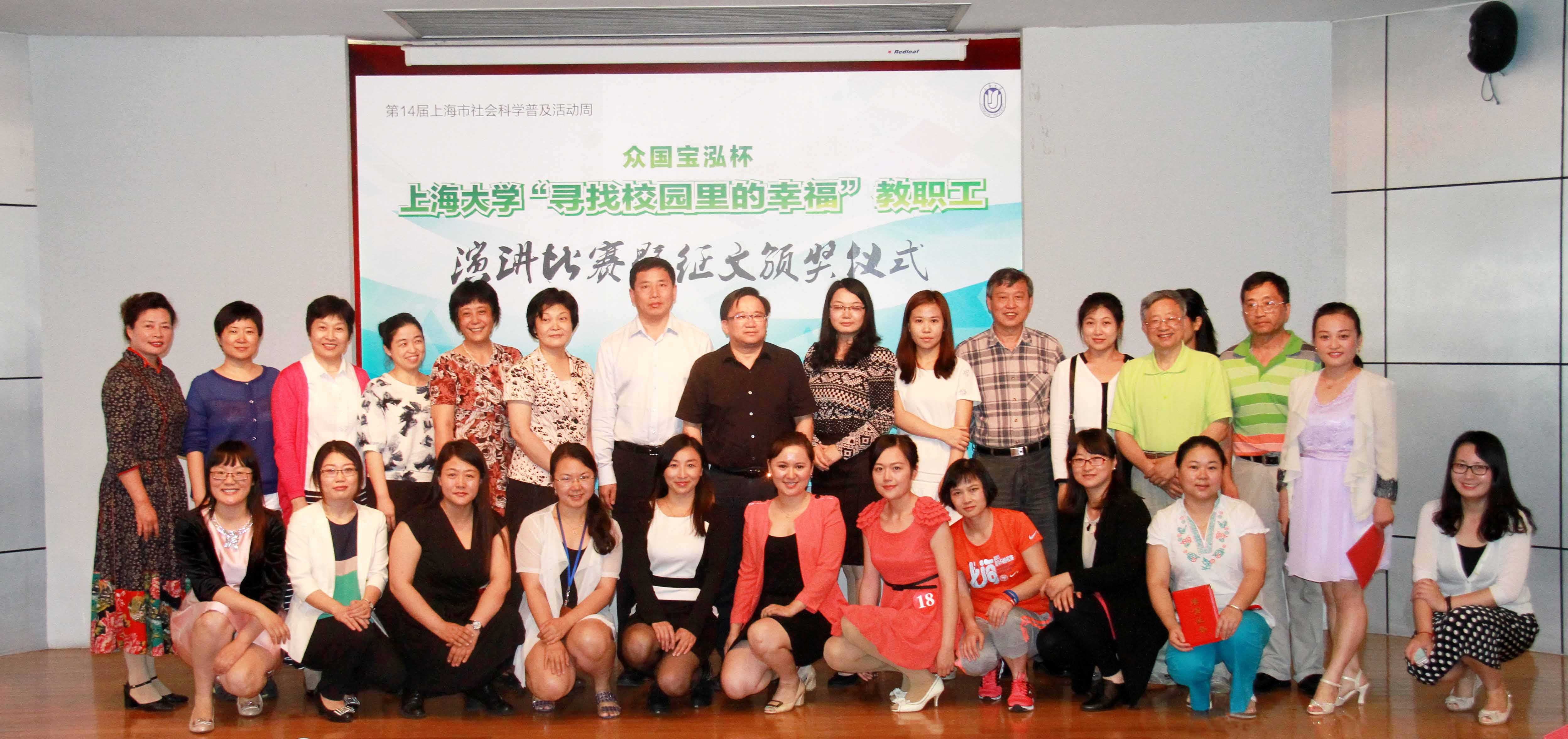 夏小和同志首先致辞。他说,今天能和大家坐在一块儿聊聊幸福这点事,本身就是一件幸福的事,“不管是酸甜苦辣也好,喜怒哀乐也罢,无论生活是眷顾还是伤害了我们,我相信优秀的人总能走出困境活出风采,今天参加演讲的教师和征文的教师是这样,我们上大还有很多这样的教师”。他对各单位和选手付出的努力表示感谢,并预祝大家取得好成绩。
