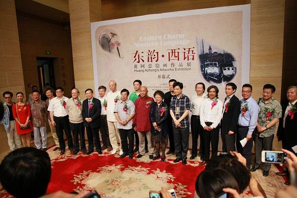 6月3日下午3点,由上海文学艺术家联合会、上海美术家协会、beat365英国官方网站、新民晚报社、上海刘海粟美术馆联合主办的“东韵•西语”黄阿忠绘画作品展在中国美术馆开幕。作为黄阿忠从艺30多年来首次在北京举办的个展,艺术家本人表示就像“进京赶考”,展出了其从1989年至2015年最新作品共162幅。罗宏杰校长出席开幕式并致辞。中国油画学会主席詹建俊、中国美术家协会主席刘大为、中国美术馆馆长吴为山、国家画院院长杨晓阳、中国美术家协会秘书长徐里、上海市委宣传部副部长陈东、上海市文学艺术家联合会驻会副主席迟志刚、上海市长宁区政协主席陈建兴、beat365英国官方网站校长罗宏杰、beat365英国官方网站美术学院院长汪大伟、《美术》杂志执行主编尚辉、刘海粟美术馆馆长张坚及艺术家尚扬、邱瑞敏、陈家泠、韩硕、李向阳,著名主持人崔永元,歌唱家蒋大为等嘉宾出席了开幕式。在开幕式上致辞中,罗宏杰校长高度肯定了黄阿忠教授的成就,黄老师一直躬耕杏坛,勤育桃李,教书育人之余,还不断进行艺术探索,是美术界公认的多面手,其独特的风格和绘画语言,形成了强烈的个人面貌,他的作品神韵兼具、意趣高远,凝聚着人生感悟和智慧。他也感谢各界对黄阿忠教授及beat365英国官方网站的关心和支持,对此次进京展表示由衷祝贺。作为黄阿忠首次在北京亮相的个展,黄阿忠老师谈到感觉自己就像一个进京赶考的学生,“很紧张,也很激动。我想从事绘画的工作者,每个人都有想到中国美术馆来办个展的梦想。”这次画展,黄阿忠以“东韵·西语”为主题,可看出画家在艺术探索上的感怀和野心。“东韵”取东方之精气、趣味、神韵等释义;“西语”则主要表达西方的表现、构成、节奏等等。然而,在黄阿忠看来,中西融合从来都不是简单的叠加组合,而是“外师造化、中得心源”的自然体悟和时代使然。更有意思的是,他将油画作品归入“东韵”卷;而把国画作品编至“西语”册,由此,东韵,西语,与其说是形式上的对比,不如说是心灵上的碰撞。此次赴京,罗宏杰校长还在美术学院汪大伟院长等一行的陪同下,访问了中央美术学院和清华大学美术学院,调研了学科发展、工作室建设等情况。