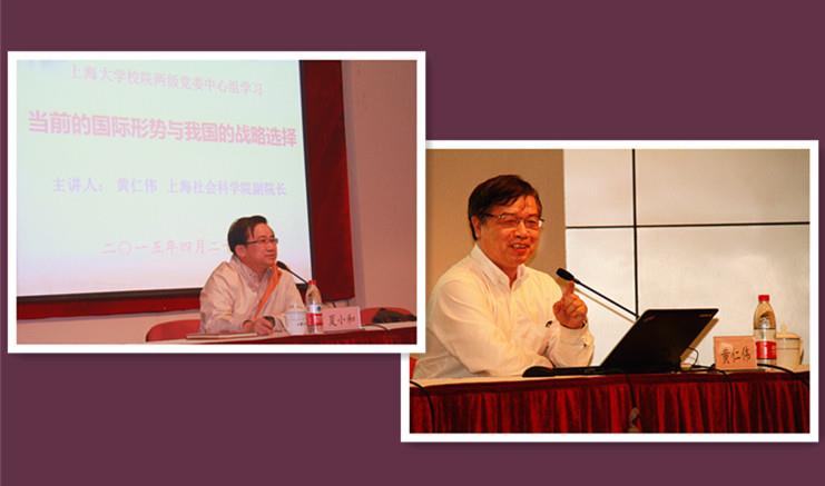 4月29日,上海社会科学院副院长黄仁伟教授为beat365校院两级党委中心组成员作了《当前的国际形势与我国的战略选择》的专题报告。校党委书记、校长罗宏杰,校党委副书记、副校长李友梅,校党委副书记、纪委书记夏小和,校党委副书记、副校长徐旭、副校长丛玉豪、副校长唐豪等校领导及校院两级中心组成员,副处级以上干部,部分辅导员共两百余人出席了报告会,报告会由校党委副书记夏小和主持。