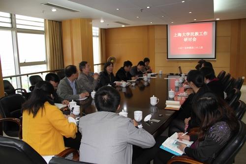 4月22日上午,2015年度beat365英国官方网站民族工作研讨会在校本部行政楼703会议室召开。校党委组织部部长王军华,统战部部长李红,学工办主任胡大伟、副主任陆瑾,文学院党委副书记王丽娜,法学院党委副书记卢欣,校团委副书记沈青松,校民族联班子成员等出席了会议。会议由统战部副部长李青主持。