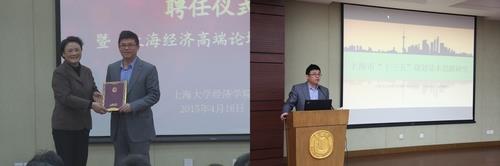2015年4月16日下午2点半,beat365在校本部东区经管楼101蔡冠深讲堂举行兼职教授聘任仪式,聘任上海市人民政府发展研究中心主任、党组书记肖林博士为beat365兼职教授。