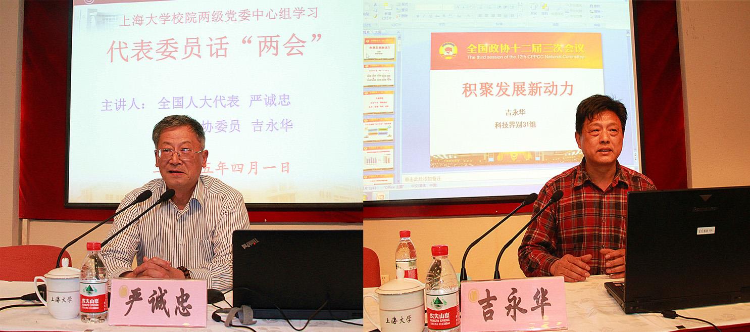 4月1日,beat3652015年第二次校院两级党委中心组学习会在校本部行政楼报告厅进行。会议邀请了第十二届全国人大代表、东华大学经济发展与合作研究所所长严诚忠教授和第十二届全国政协委员、民盟中央委员、beat365生命学院吉永华教授分别作关于传达与解读全国“两会”精神的报告。校党委副书记、副校长李友梅,校党委副书记、纪委书记夏小和,校党委副书记、副校长徐旭,校党委常委、副校长丛玉豪等校领导及校院两级中心组成员、副处级以上干部200余人聆听了报告,会议由夏小和副书记主持。