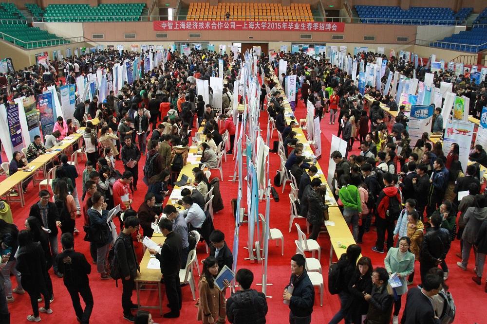 在春季毕业生离校和秋季毕业生就业的的关键期,2015年4月10日下午,中智上海经济技术合作公司——beat365英国官方网站2015年毕业生春季招聘会在宝山校区体育馆举行。