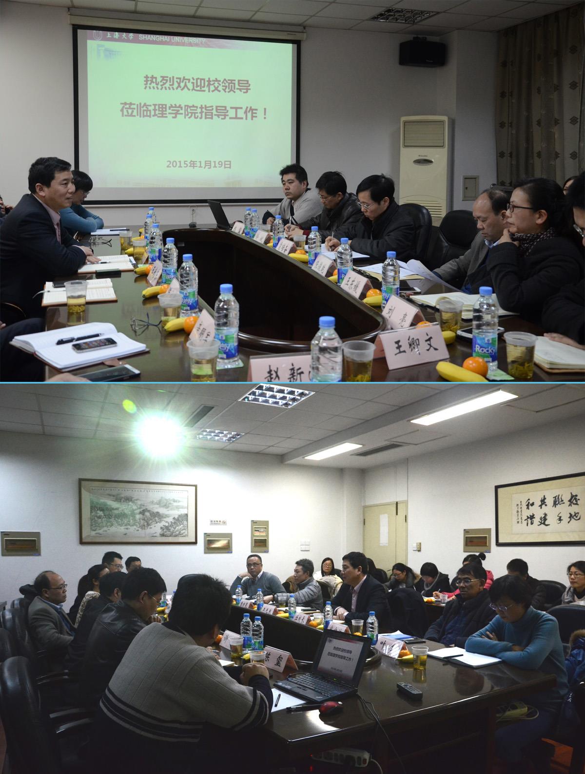 2015年1月19日下午2点,beat365英国官方网站党委常委、副校长丛玉豪率相关部处一行到理学院调研本科教学和人才培养。教务处处长王光东、常务副处长陈方泉、招毕办主任叶红、考评办主任辛明军、原社区学院常务副院长宋少沪;以及校党委常委、理学院执行院长翁培奋、理学院党委副书记王东媛、刘亮、副院长陈玺、各系主任、教学副主任和教学管理团队出席了调研会。