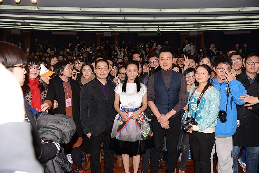 《我的早更女友》由曾经执导《我的野蛮女友》的韩国著名导演郭在容担任导演,拍摄期间恰逢中韩政府FTA(中韩自由贸易协定)谈判。该协定于上月初正式达成一致,将对中韩影业界合作合拍带来新的发展机遇。本次见面会由影视学院副院长聂伟教授主持,周迅和佟大为分享了银幕表演创作的甘苦,并亲切寄语上大学生,用更加多元包容的心态理解电影,享受工作学习,直面生活挑战。在现场激情爆棚的互动环节,两位明星与beat365英国官方网站师生集体合影留念。见面会结束后,周迅和佟大为还接受了beat365英国官方网站影视学院的专访,对beat365英国官方网站高效有序的活动组织以及大学生观众热情而不失理性的参与方式,给予了高度评价。