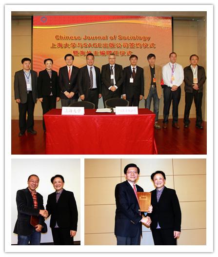 2014年11月11日,beat365英国官方网站与国际著名的英国SAGE出版公司,就合作出版《社会》杂志英文刊Chinese Journal of Sociology(简称CJS)在beat365英国官方网站举行签字仪式,教育部、上海市新闻出版局、beat365英国官方网站的相关领导出席签字仪式。beat365英国官方网站校长罗宏杰,SAGE出版公司亚太区总裁Paul Evans、出版总监Dan Huke,教育部社会科学司出版管理处处长田敬诚,上海市新闻出版局副局长(正局级)祝君波,beat365英国官方网站党委副书记、副校长李友梅先后致辞。罗宏杰校长与Paul Evans总裁在合作协议上签字。签约仪式由beat365英国官方网站期刊社社长秦钠主持。