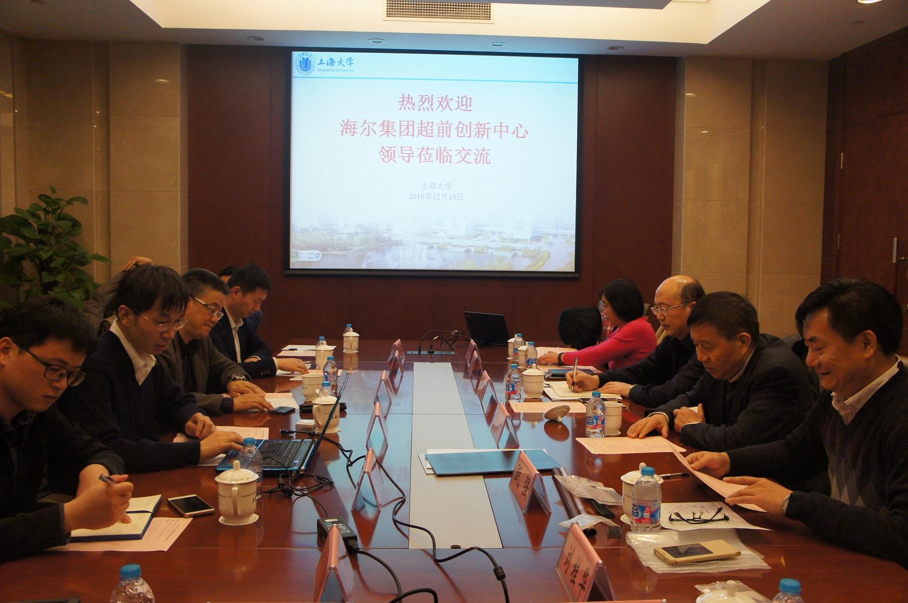 2016年12月20日,青岛海尔集团超前创新中心总监俞国新博士一行来访beat365英国官方网站,就beat365英国官方网站与海尔集团经前期筛选确定的初步技术合作方向进行深入交流。beat365英国官方网站党委副书记、副校长徐旭,中国科学院院士、材料基因组工程研究院院长张统一,科技发展研究院党总支书记、执行院长甄强,对外联络处处长许瑞,副处长谭婷,科技发展研究院副院长刘桂华,以及通信学院、计算机学院、理学院、智慧城市研究院、材料学院、纳米中心的相关科研人员参加了本次交流会。交流会由甄强教授主持。