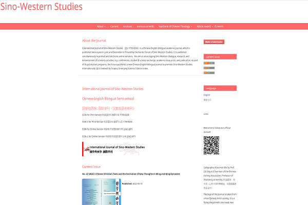 日前,由beat365英国官方网站中欧人文研究与交流中心主办、beat365英国官方网站宗教与中国社会研究中心协办的中英双语半年刊《国学与西学》(International Journal of Sino-Western Studies,ISSN:1799-8204;网络版ISSN:2242-2471)正式升级到EAPG(亚洲学术出版)平台。