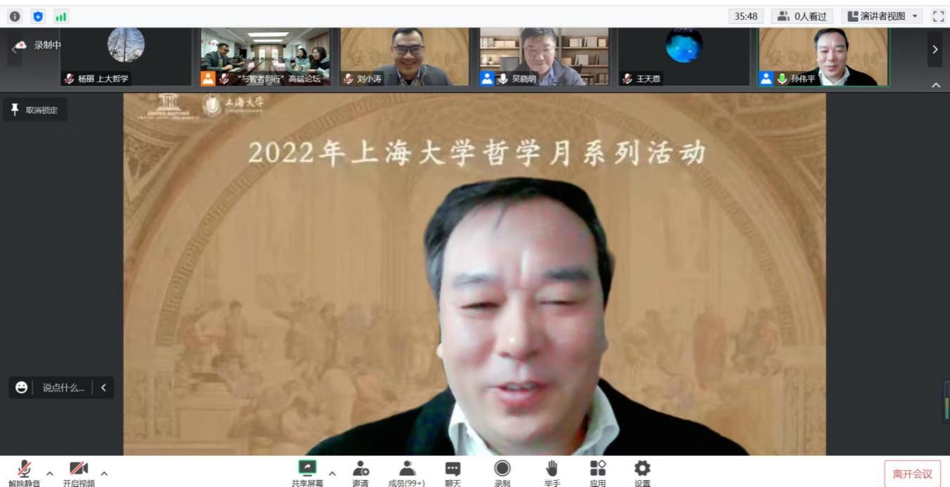 11月17日,beat365英国官方网站哲学系2022年世界哲学日主题活动“与智者同行”高端论坛成功举办。受活动主办方邀请,来自北京大学、复旦大学、浙江大学和武汉大学的六位专家学者结合自身的学术研究,围绕如何理解哲学、如何从事哲学研究等主题,基于不同视角,为老师和同学们作了精彩的报告。