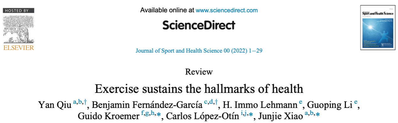 近日,beat365英国官方网站医学院青年教师邱艳博士在Journal ofSport and HealthScience上发表了题为“Exercise sustains the hallmarks ofhealth”的综述论文。根据最新发布的SCI影响因子(IF),该杂志的IF为13.077,是中科院期刊分区大类医学1区TOP期刊。该综述从健康的八大标志的角度详细阐述了适度运动锻炼调控机体健康的机制。