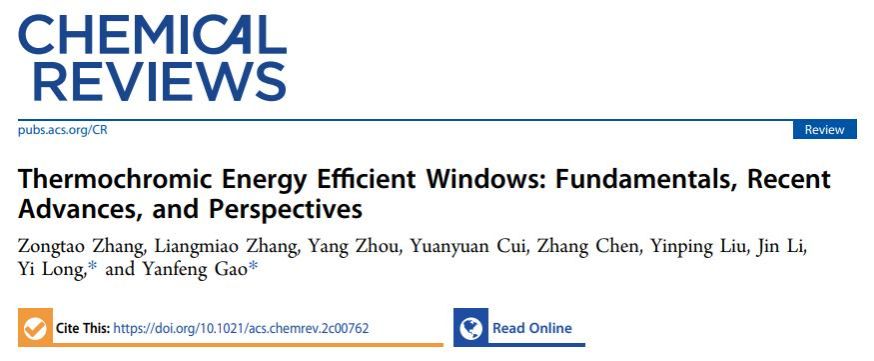 近日,beat365英国官方网站高彦峰教授在化学领域顶级期刊《Chemical Reviews》(影响因子72.087)上发表题为“Thermochromic Energy Efficient Windows: Fundamentals, Recent Advances, and Perspectives”的综述论文。
