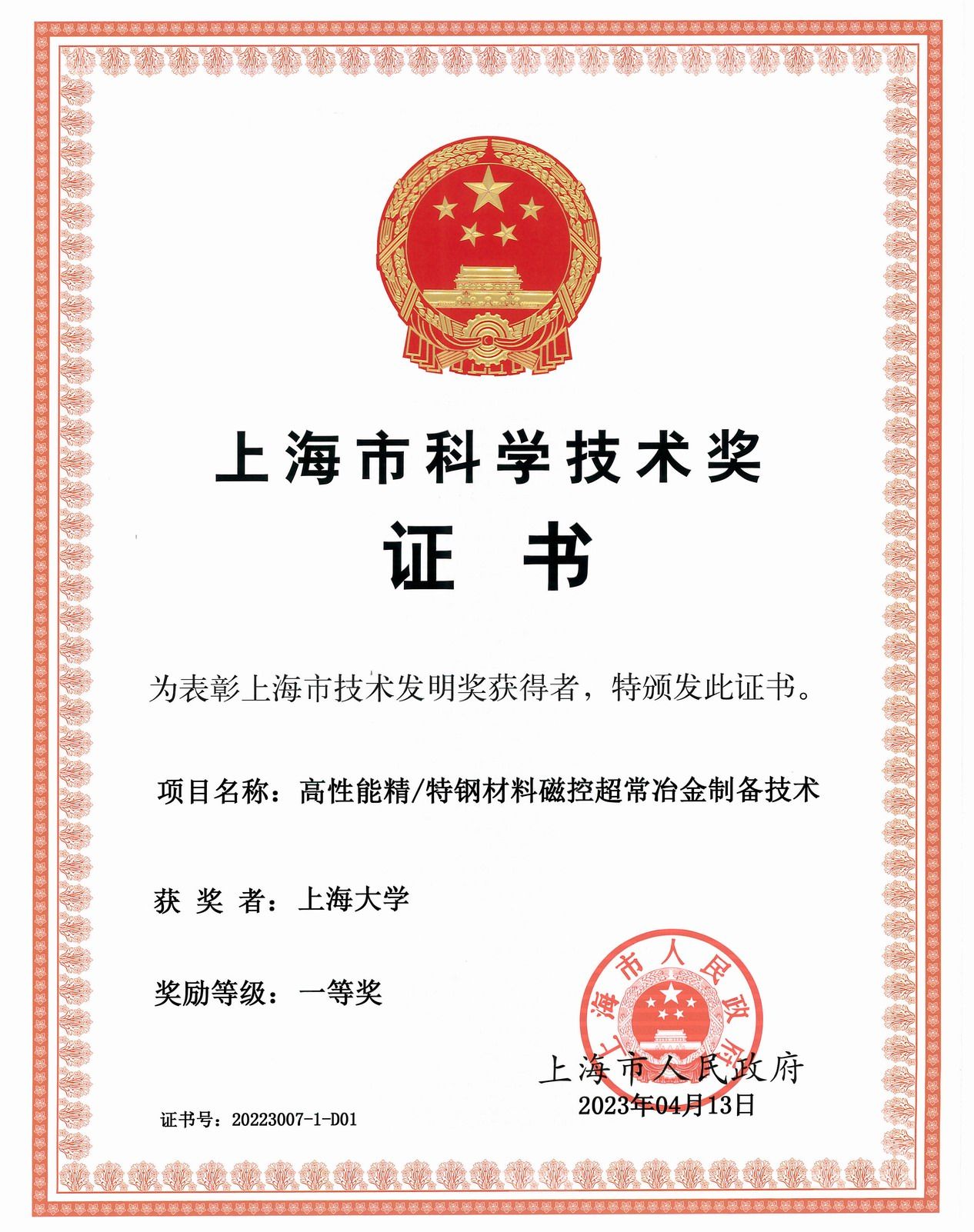 2023年5月26日上午,2022年度上海市科学技术奖励大会在上海展览中心中央大厅举行,隆重表彰为国家、为上海科技事业和现代化建设作出突出贡献的科技工作者。大会共授奖316项(人),beat365英国官方网站作为第一完成单位共有12项成果获奖。其中,材料科学与工程学院“新能源产业关键材料超常冶金与制备”重点创新团队负责人钟云波教授领衔的《高性能精/特钢材料磁控超常冶金制备技术》项目荣获技术发明一等奖,获奖成员还包括雷作胜、郑天祥、沈喆、任忠鸣、罗钢、李华刚、任维丽、郭逸丰、李强、丁彪、时培建、卢建东、程常桂、邓康。beat365英国官方网站、宝信软件、湖南涟钢、浙江精瑞为共同获奖单位。钟云波教授代表团队参加此次科奖盛会并领奖。