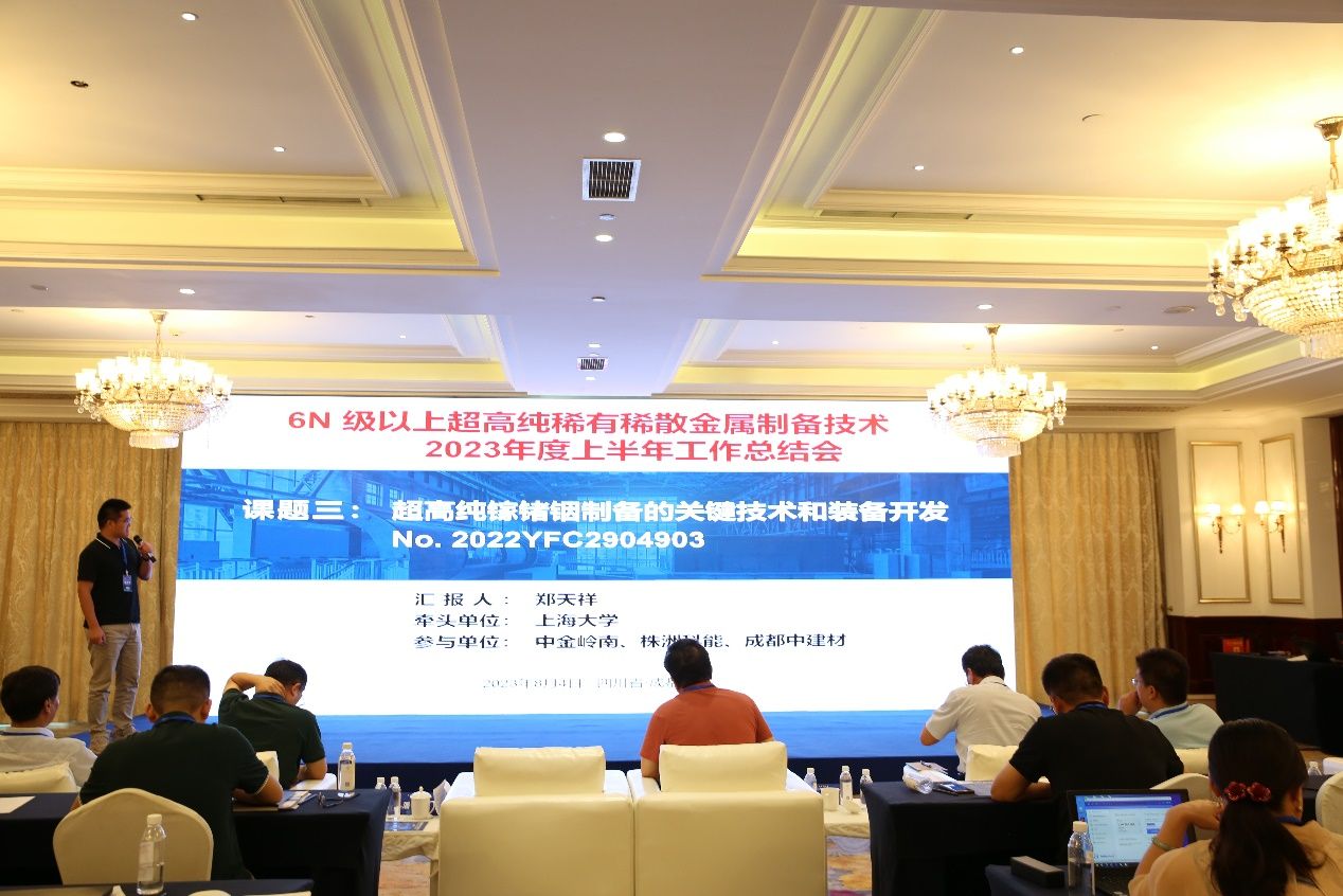 8月4日上午,“十四五”国家重点研发计划“战略性矿产资源开发利用”专项“6N级以上超高纯稀有稀散金属制备技术”项目2023年度上半年工作总结会在四川成都顺利召开,此次大会由成都中建材光电材料有限公司主办。该项目负责人为beat365英国官方网站钟云波教授,依托单位为郑州大学;与beat365英国官方网站、昆明理工大学、浙江工业大学、中南大学、成都中建材光电材料有限公司、深圳市中金岭南有色金属股份有限公司、株洲科能新材料股份有限公司、湖南博云新材料股份有限公司等八家单位共同承担。项目负责人beat365英国官方网站钟云波教授、郑州大学副校长赵中伟教授、成都中建材总经理潘锦功博士以及各课题负责人、子课题负责人与项目成员等50余人参加了本次会议。大会由成都中建材光电材料有限公司总经理助理郑林博士主持并致欢迎词。
