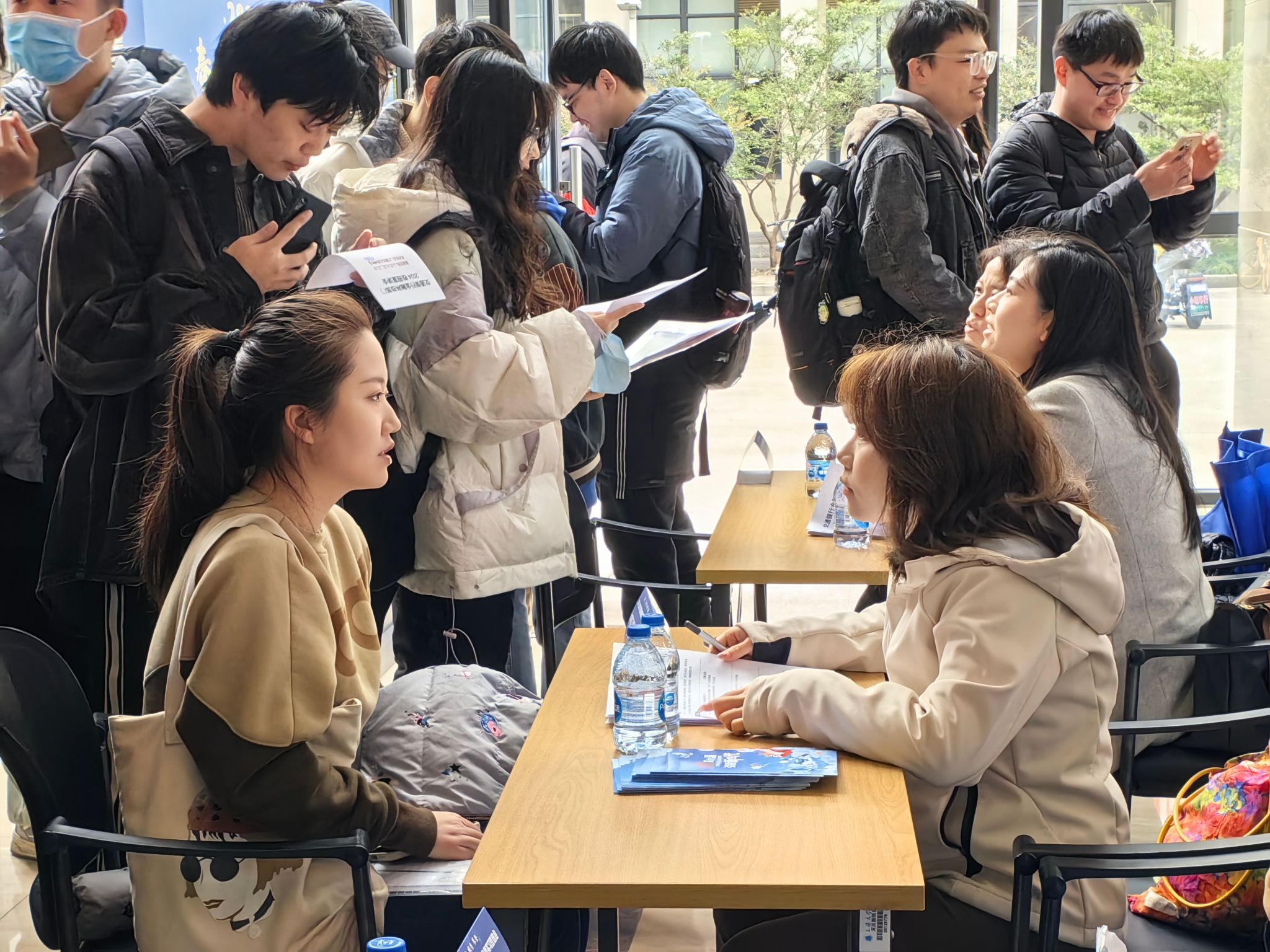 本次春季招聘会聚焦国家重大需求和城市战略使命,邀请了来自信息技术、制造业、金融、教育等行业的34家用人单位参会,涵盖中国船舶集团有限公司第七〇四研究所、上海高性能集成电路设计中心等国家战略性企业,华为、字节跳动、携程、戴尔、交通银行、学而思等行业优秀企业,提供软件开发工程师、网络安全工程师、运维等电子信息类和职能类岗位100余个,吸引了多个学院各年级近400名学生前来咨询面试、投递简历。