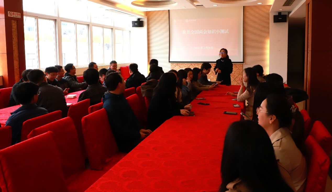 知识竞答开展前期,学院全体教职工通过主流学习平台进一步深入学习了2024年全国两会精神,在知识竞答现场,广大教师积极参与比赛,并积极思考激烈抢答,进一步激发了老师们关注时政,以实际行动践行两会精神的热情。