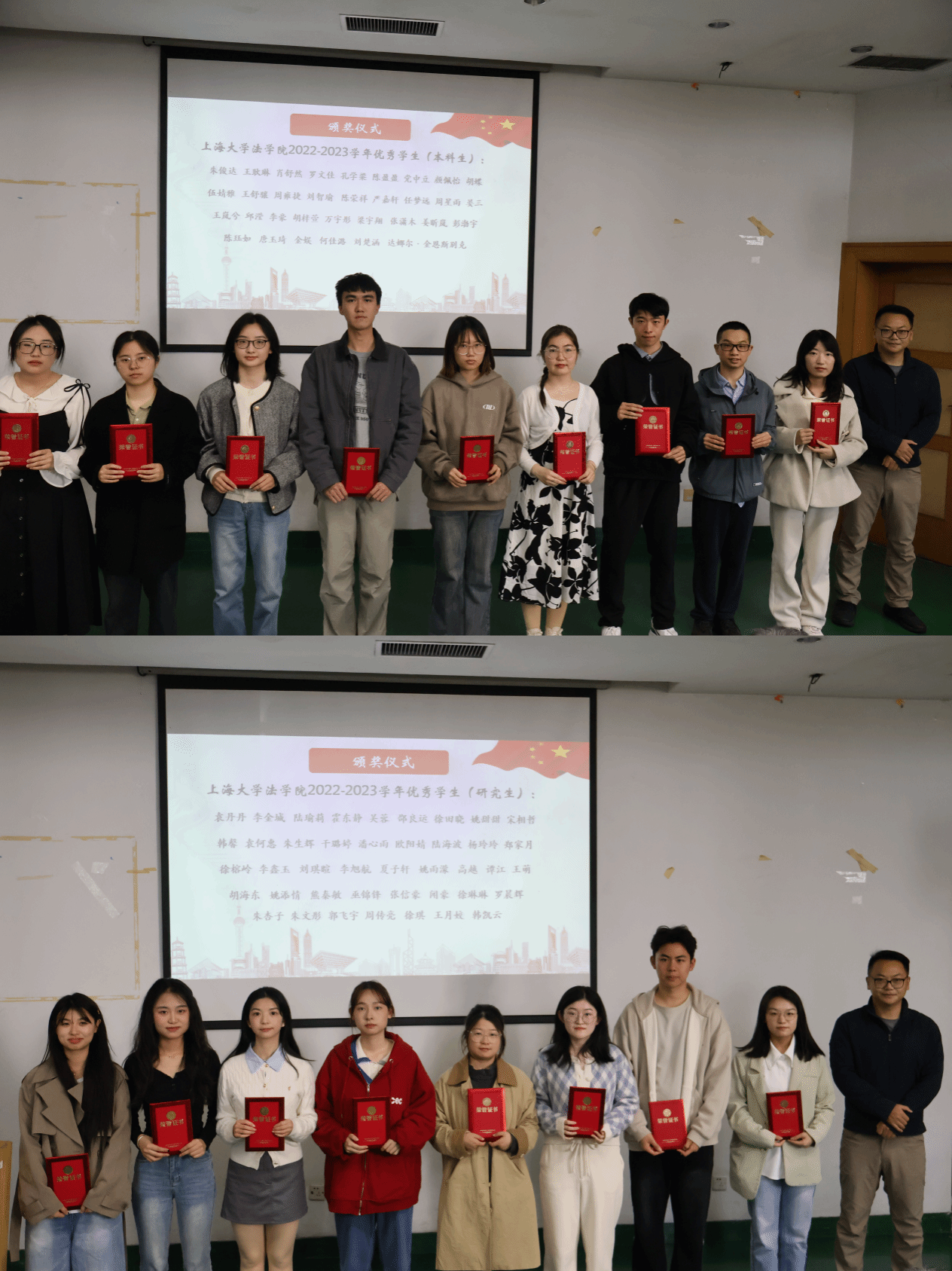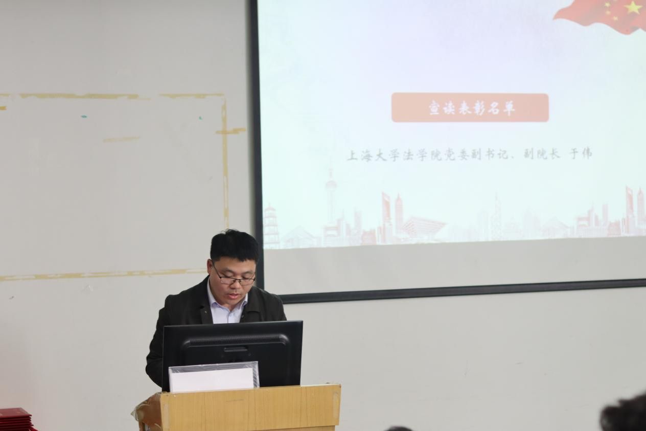 随后,法学院于伟老师宣读《beat365英国官方网站法学院2022-2023学年优秀学生个人和集体获奖名单》,代表学院对获奖的学生个人和集体表示热烈祝贺,并希望全体法学院学生能向先进模范学习。