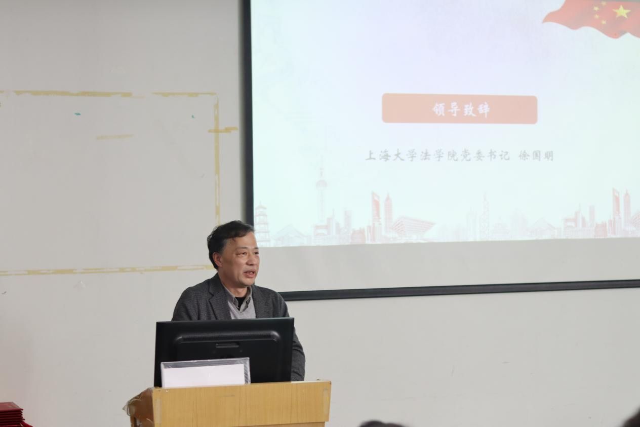 会议伊始,法学院党委书记徐国明代表全体法学院党委对本次表彰大会获得荣誉的学生表示祝贺并对上海黄金交易所的大力支持表示感谢。