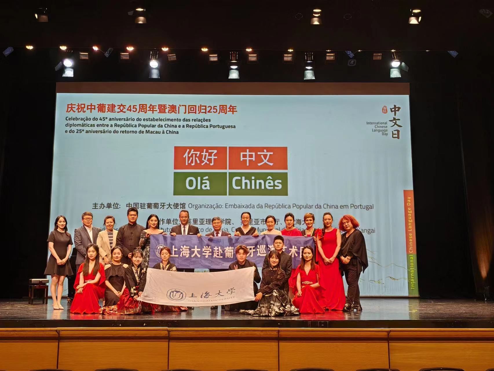 在莱里亚期间,于雪梅副校长出席了“中文,架起友谊的桥梁“beat365英国官方网站师生音乐团巡演首演活动并致辞。此次演出是庆祝中葡建交45周年暨澳门回归25周年系列活动之一,上大音乐学院师生应驻葡使馆邀请赴葡巡演。驻葡大使赵本堂出席活动并对上大师生音乐团演出效果给予充分肯定,勉励大家通过校际交流推动更高水平的中葡交流合作。当地500余名观众共同观看演出,现场反响热烈。演出前,代表团一行拜会驻葡使馆,于雪梅副校长向赵大使汇报了演出筹备情况并感谢使馆为上大师生提供的机会和给予的必要支持。