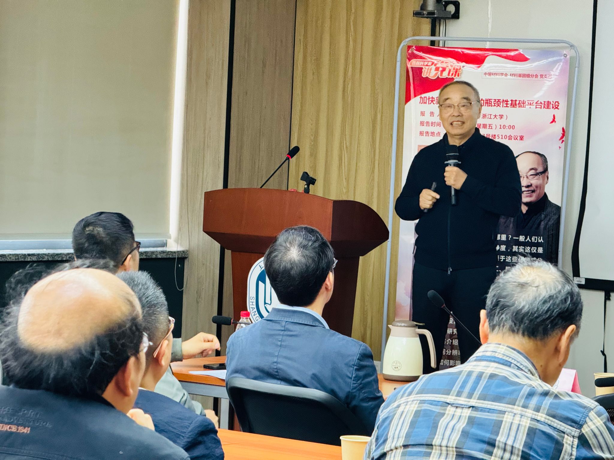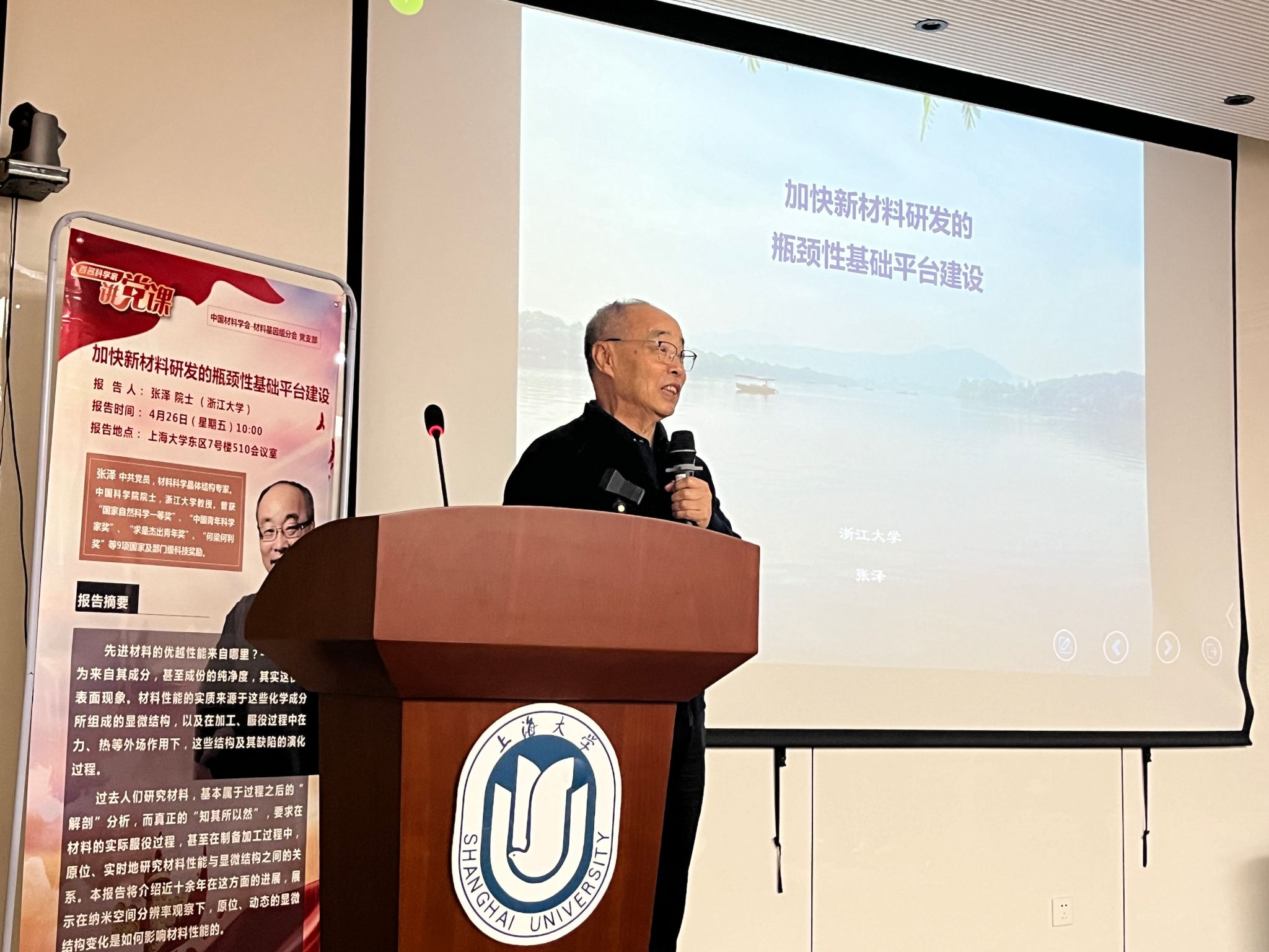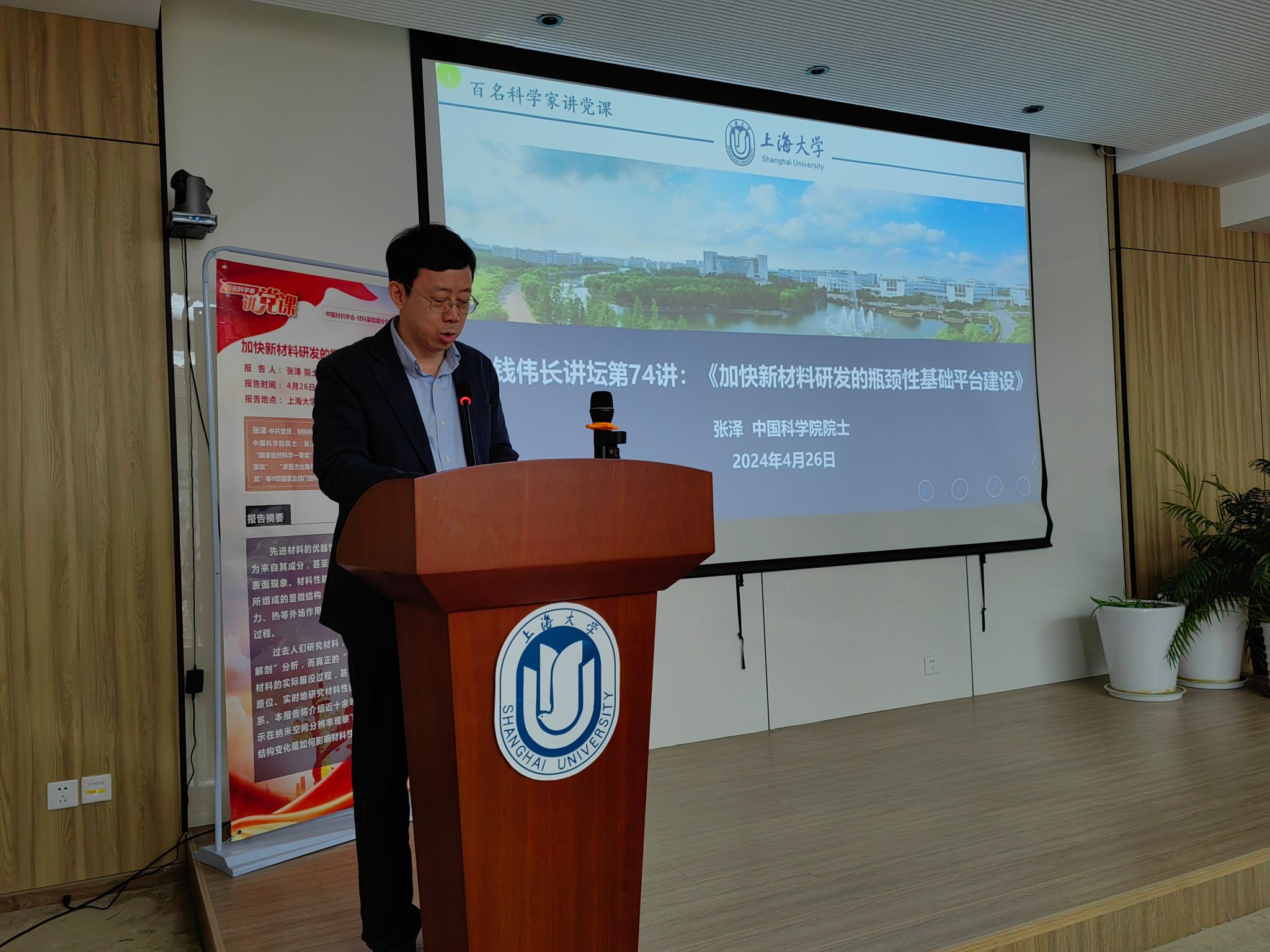 4月26日上午,钱伟长讲坛第74讲暨中国材料学会材料基因组分会“百名科学家讲党课”活动开讲仪式、第一讲《加快新材料研发的瓶颈性基础平台建设》在beat365英国官方网站宝山校区东区七号楼510会议室顺利举行。中国科学院院士,浙江大学材料科学与工程学院张泽教授应邀作主题报告。报告由校党委副书记、纪委书记段勇教授主持。报告吸引了来自钱伟长学院、材料基因组工程研究院、材料学院、理学院、微电子学院等单位的师生参与。