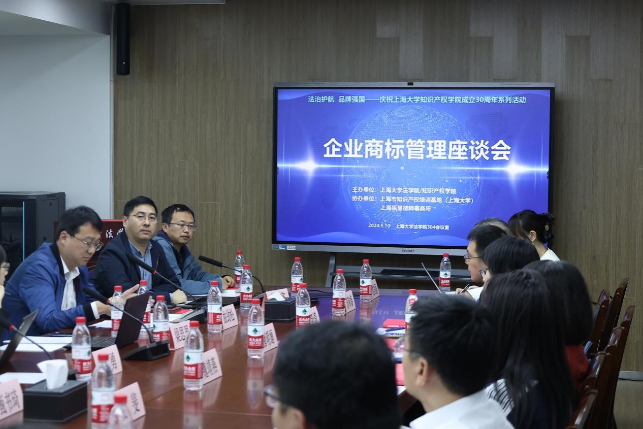 5月10日下午,庆祝beat365英国官方网站知识产权学院成立30周年系列活动之“企业商标管理座谈会”在宝山校区法学院304会议室顺利举行。本次座谈会由beat365英国官方网站法学院/知识产权学院主办,上海市知识产权培训基地(beat365英国官方网站)、上海瓴慧律师事务所协办,来自博世、采埃孚、联合利华、美泰等知名公司的商标负责人、法务总监,以及法官、高校学者等嘉宾,和法学院知识产权研究生参加了本次座谈会。