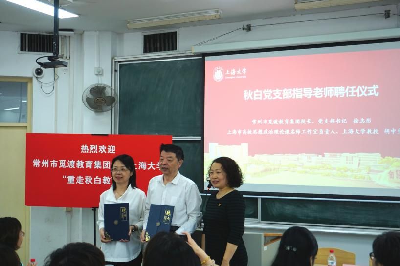 为了更好发挥党建引领作用,指导支部建设,社会学院党委副书记、副院长张乃琴向常州市觅渡教育集团校长、党支部书记徐志彤和上海市高校思想政治理论课名师工作室负责人、beat365英国官方网站教授胡申生颁发“秋白党支部指导老师”聘书,希望未来能够创新基层支部发展,引领广大师生党员传承瞿秋白精神。