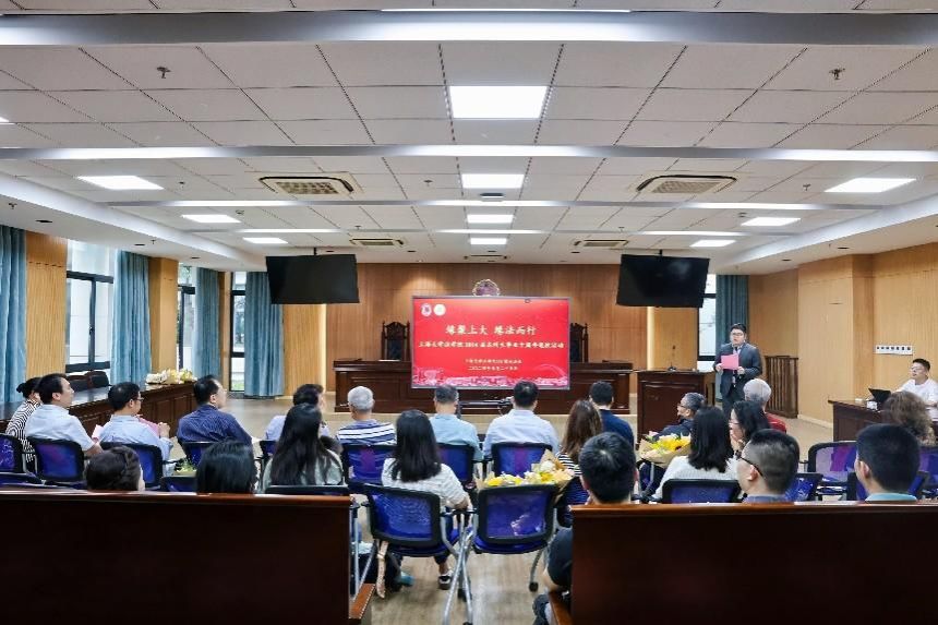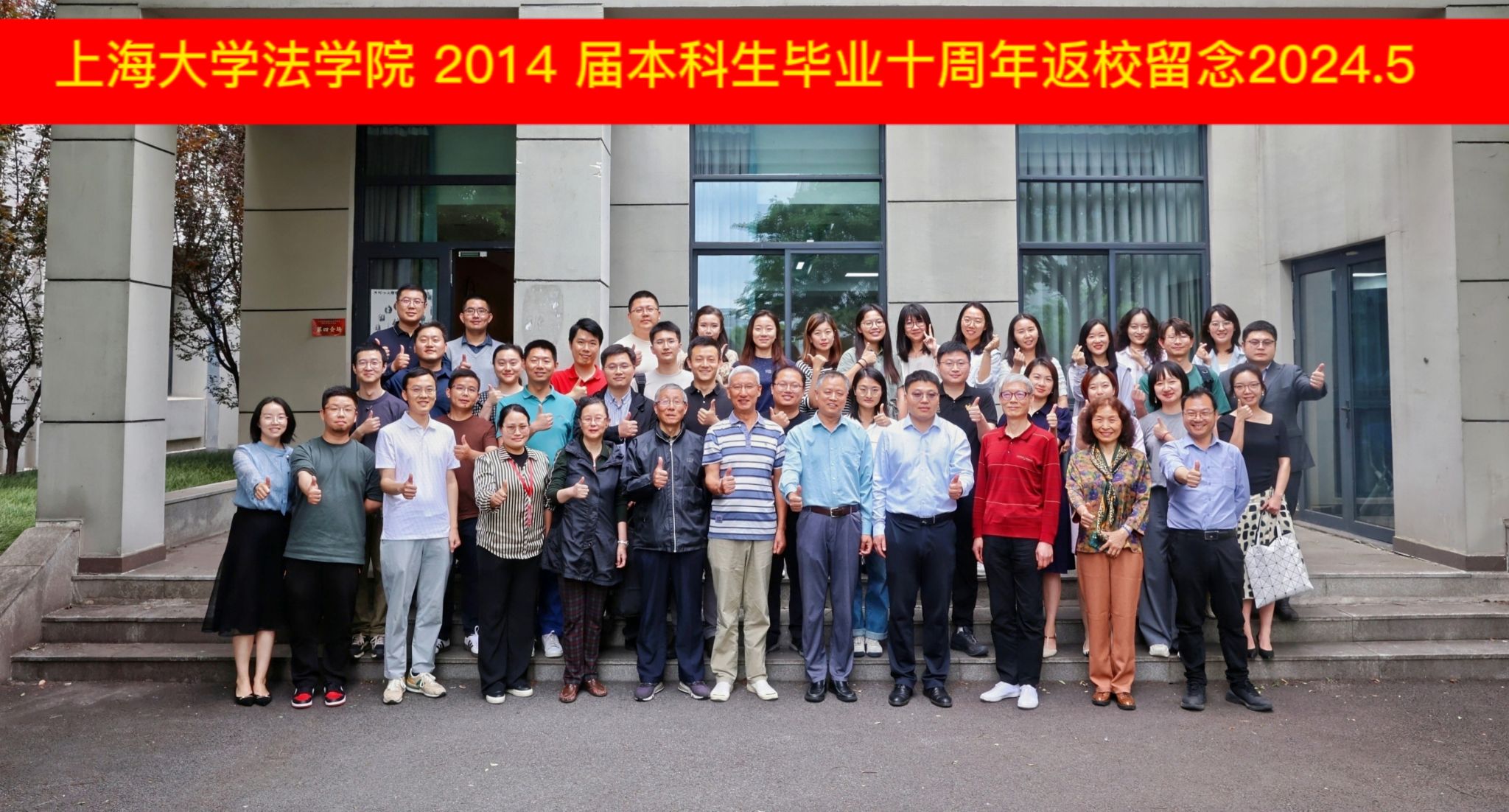 5月25日,“缘聚上大,缘法而行”beat365英国官方网站法学院2014届本科生毕业十周年返校活动在法学院113模拟法庭顺利举行。法学院党委副书记、院长李凤章教授,法学院党委副书记、副院长于伟副研究员,法学院副院长袁真富副教授,以及教师代表胡建国老师、姚锷老师、包远寒老师、金雅萍老师、陈敬根老师、李俊峰老师、郑飞老师、赵辉老师、李立新老师、林建玲老师和30余名校友代表出席了本次活动。