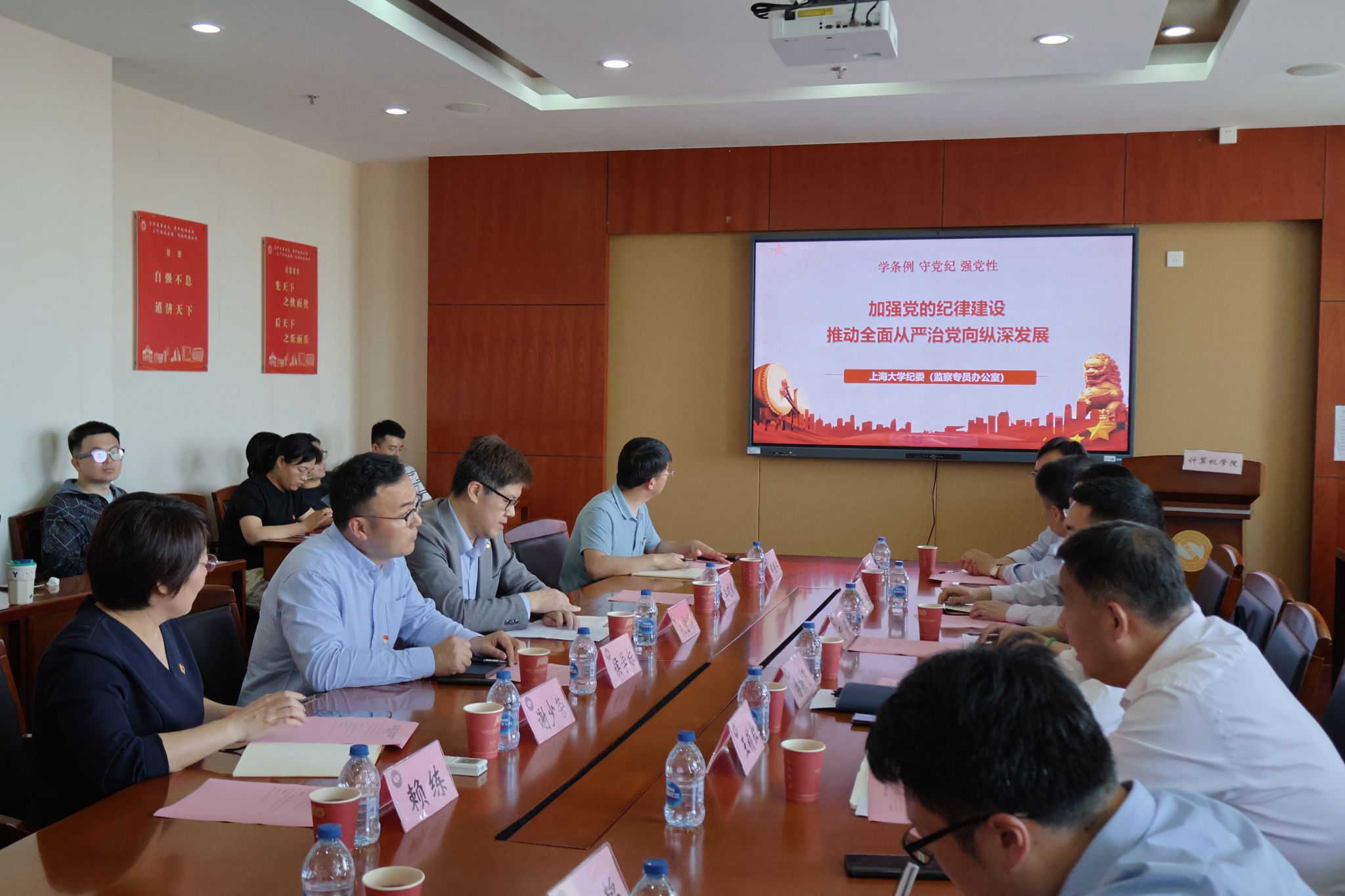 为深入学习贯彻习近平总书记关于加强党的纪律建设的重要论述,准确把握新修订的《中国共产党纪律处分条例》的内涵要义和实践要求,进一步推动党纪学习教育工作走深走实,形成“联建联学、互融互促”的良好氛围,5月24日下午,beat365英国官方网站计算机学院与宝山区友谊路街道开展党纪学习教育联组学习暨警示教育专题报告会。宝山区友谊路街道党工委副书记、办事处主任潘振飞一行,beat365英国官方网站纪委(监察专员办公室)监督检察室主任侯学标,计算机学院领导班子、教工支部书记及学生支部书记代表参与本次活动。