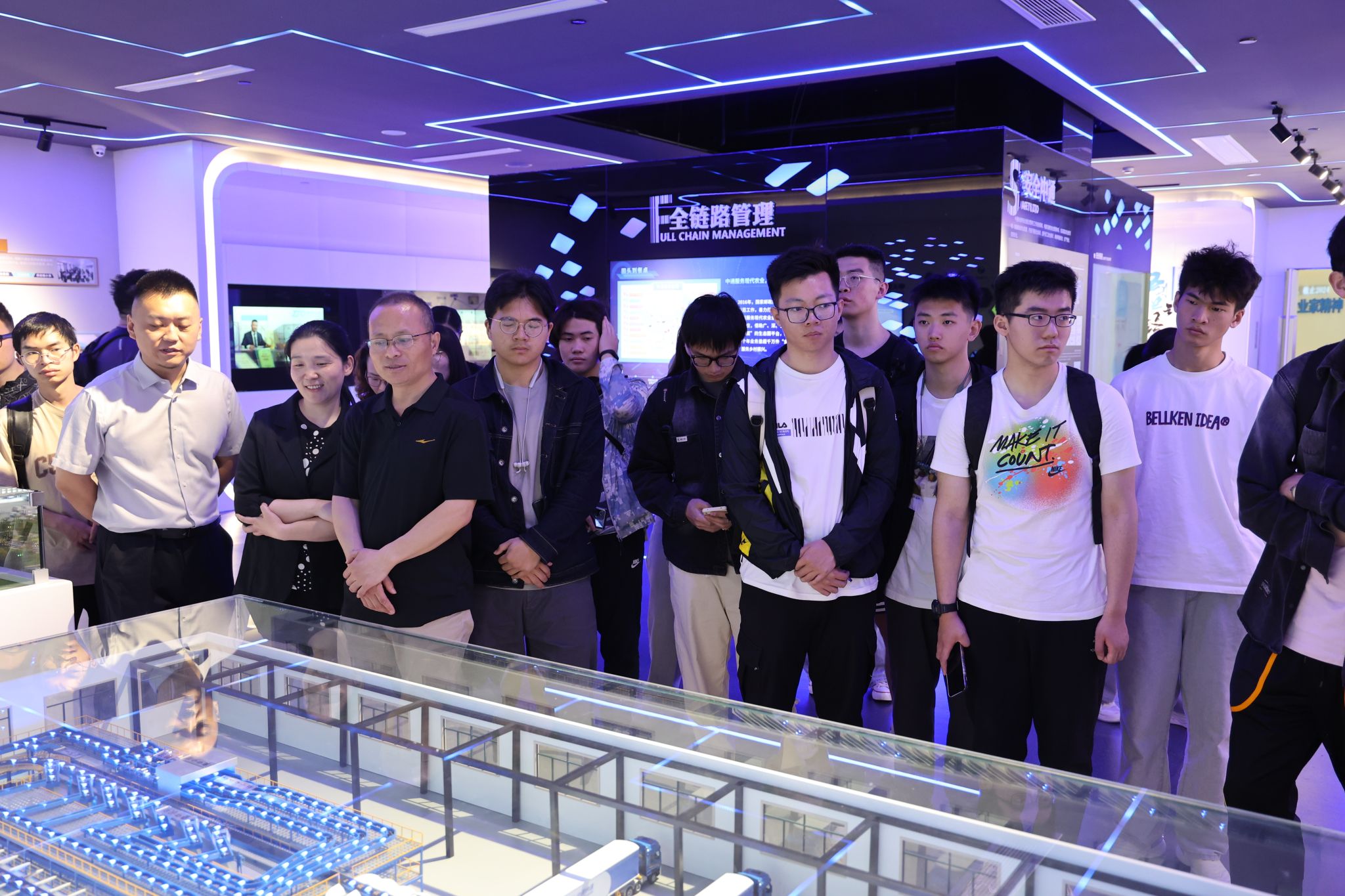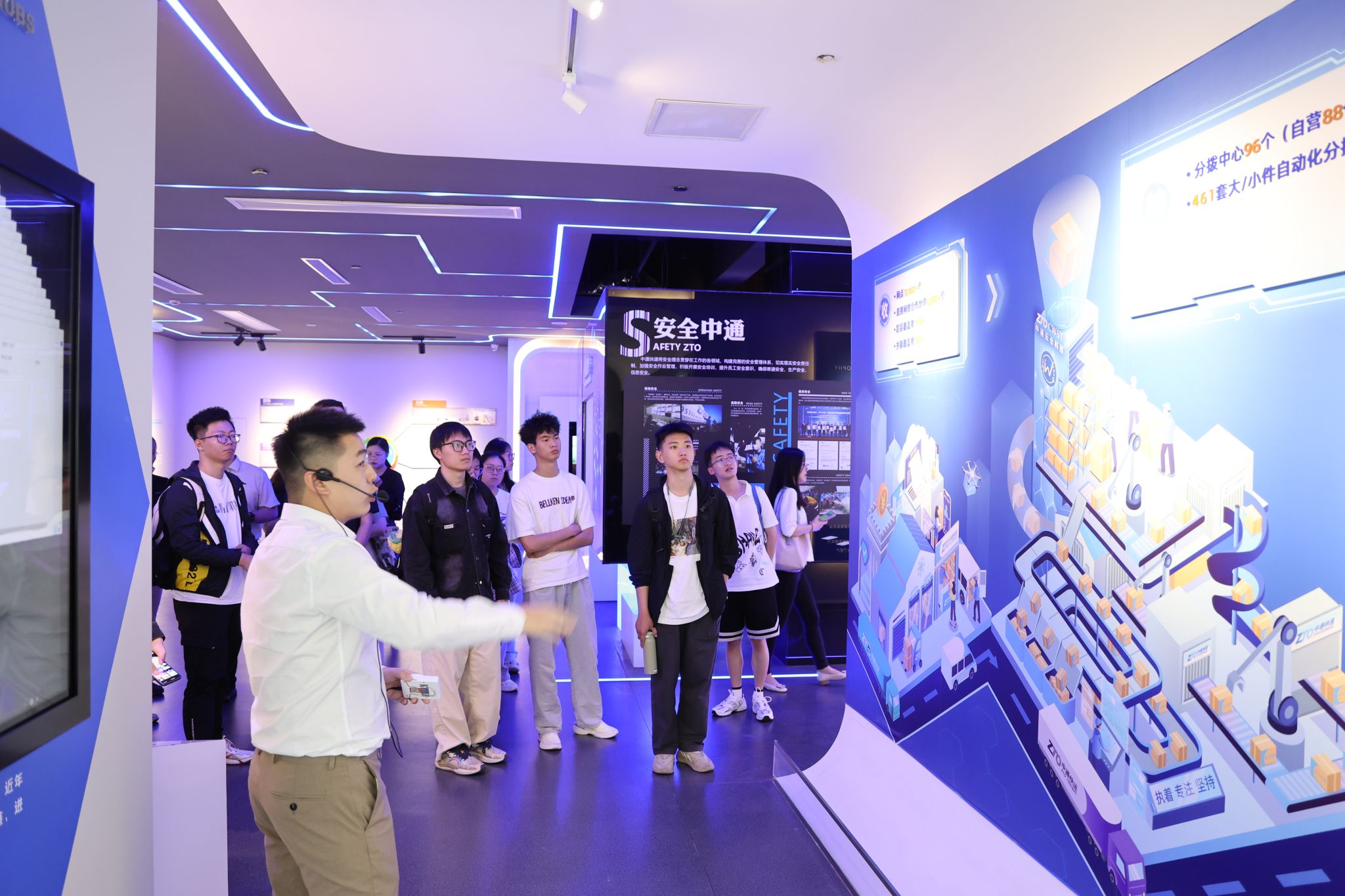 第一站,师生们在中通快递集团负责人的带领下参观了企业展厅,了解了中通快递集团的发展历程、价值取向以及员工关怀等内容。讲解员详细讲解了中通快递集团从追随、追赶到领先的发展历程,介绍了发展过程中取得的成绩与荣誉并通过具体实例展现了集团对社会的贡献以及对员工的关怀。参观过程中,同学们积极互动,讲解员耐心地进行了解答。