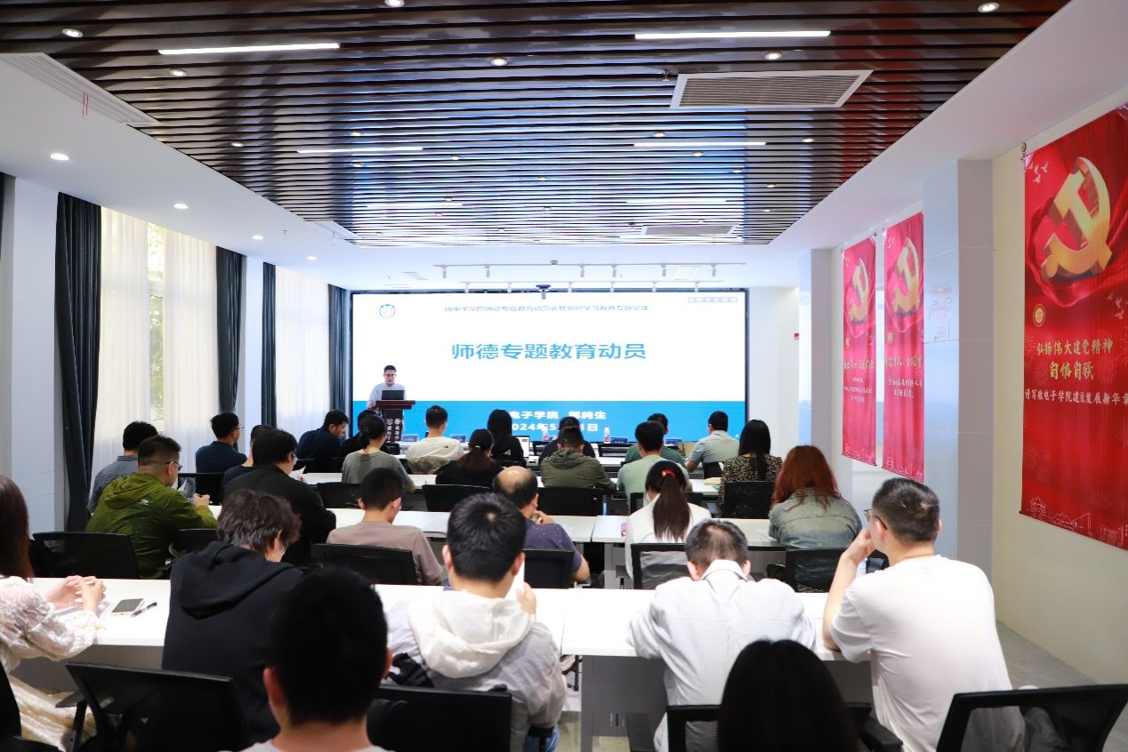为深入学习贯彻习近平总书记关于教育的重要论述和教师队伍建设的重要指示批示精神,大力弘扬爱国、创新、求实、奉献、协同、育人的科学家精神,强化微电子学院师德师风建设,5月31日,微电子学院在嘉定校区微电子学院A楼101会议室开展师德专题教育动员会。学院党政班子、全体教职工参加了培训会议。会议由学院党委副书记余丽娜主持。