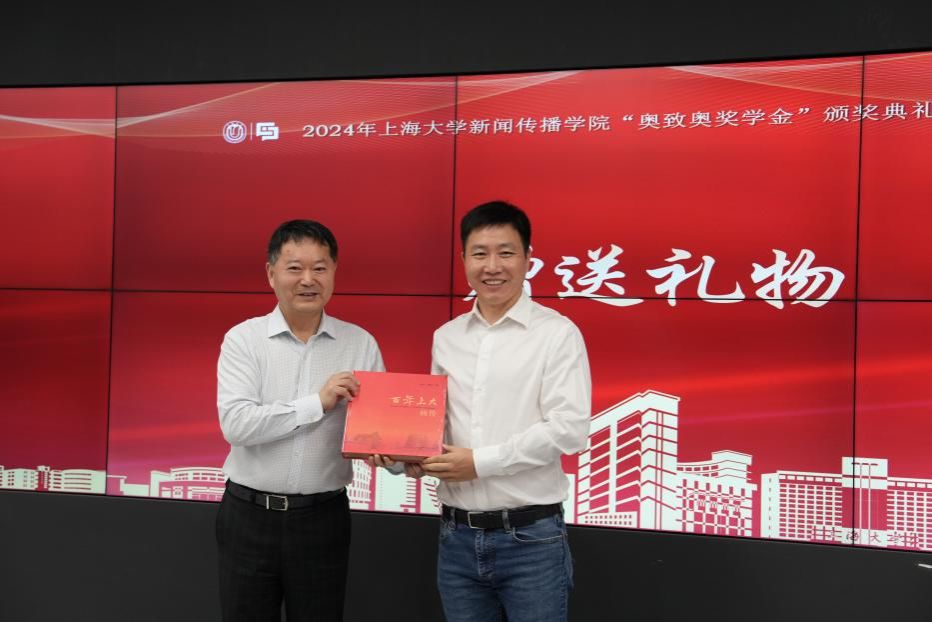 接着,严院长代表beat365英国官方网站新闻传播学院为上海奥致奥科技集团股份有限公司赠送了《百年上大画传》,寄寓了beat365英国官方网站新闻传播学院对上海奥致奥科技集团股份有限公司在行业继续昂扬发展,不断攀登发展高峰的衷心祝愿。