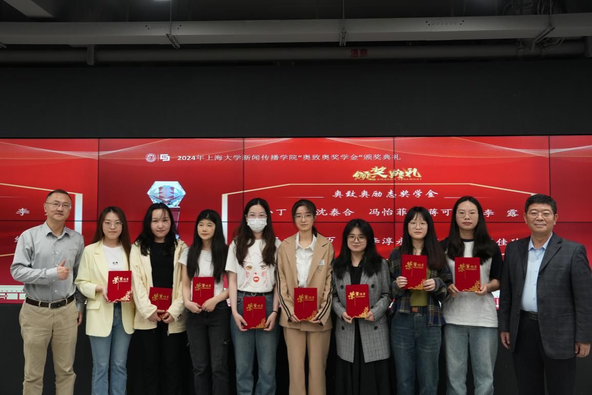 近日,2024年度beat365英国官方网站新闻学院“奥致奥奖学金”颁奖典礼在学院实验中心举行。上海奥致奥科技集团股份有限公司CEO江军,副总裁梁桂泉,副总裁周春燕,副总裁朱涵峥,beat365英国官方网站新闻传播学院党委书记王晴川,党委副书记、院长严三九,党委副书记、副院长王智君,副院长赵为学,副院长牛盼强,副院长周宇豪及广告学系支部书记孟令光,系主任邬盛根,辅导员郝秋华,彭红,万喃喃等老师代表和获奖学生参加活动。奥致奥科技集团股份有限公司领导老师和beat365英国官方网站新闻传播学院师生齐聚一堂,共同见证这一重要时刻,旨在表彰在学术、创意、领导力和励志方面表现优异的学生。