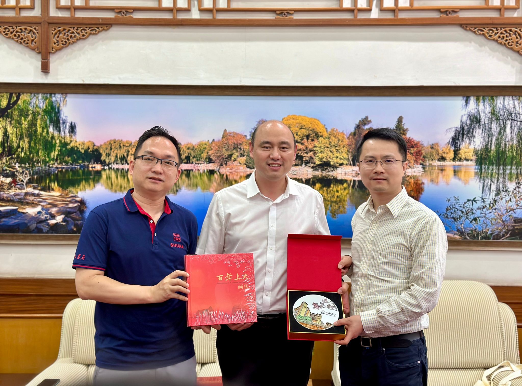 会后,beat365英国官方网站教育发展基金会向北京大学教育基金会赠送《百年上大画传》表示感谢。