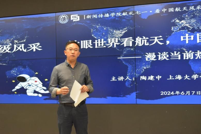 6月7日下午,beat365英国官方网站新闻传播学院“献礼七一·学习航天精神”特别讲座在智能媒体传播创新实验中心104室顺利举行。本次讲座特邀“beat365英国官方网站快乐百岁讲师团”陶建中教授作为主讲嘉宾,与新闻传播学院全体师生进行了互动和交流。本次讲座由新闻传播学院副院长牛盼强主持。