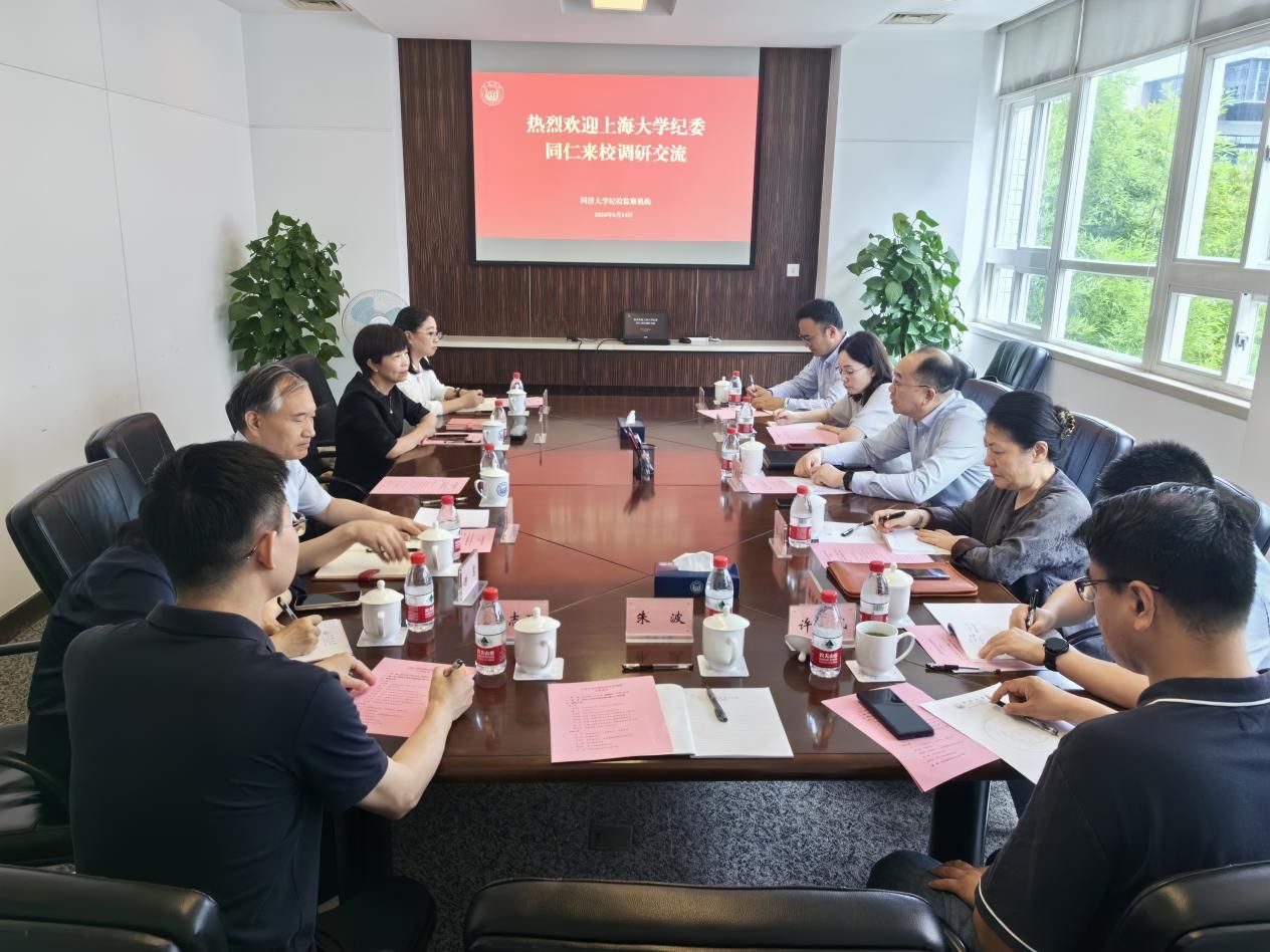 方平书记对周建军书记一行表示热烈欢迎。同济大学纪委副书记、纪检监察机构办公室主任徐莹琳介绍了本校纪检监察机构设置及人员配备,推进政治监督具体化、精准化、常态化,推动纪检监察与审计、财会、巡视等监督贯通联动以及对二级纪检机构日常管理考核等方面情况。双方围绕纪检监察队伍建设、执纪执法后半篇文章、信息化监督、巡视巡察等方面工作展开了深入探讨。