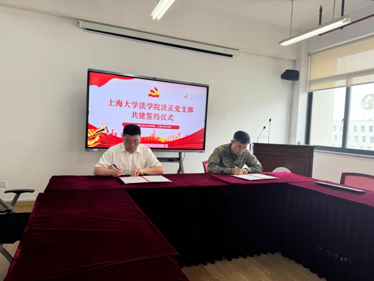 6月13日上午,91528部队综合仓库党委与beat365英国官方网站法学院法正党支部共建签约仪式在法学院504会议室顺利举行。91528部队综合仓库党委书记冯骁及官兵代表季镜一、周添、刘旭阳,beat365英国官方网站法学院党委副书记、副院长于伟以及法正党支部党员代表们出席本次共建签约仪式。仪式由法学院研究生党建中心副主任高戊凡主持。