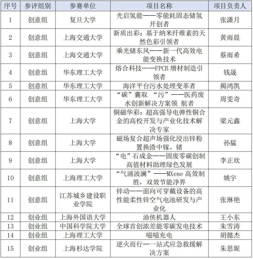 经专家初赛评审,本届大赛“新能源、新材料、节能环保”赛道共有包括复旦大学、上海交通大学、山东大学、同济大学等28所高校的55支团队晋级复赛,不少项目对接“双碳”战略、海洋强国战略等国家重大战略需求,瞄准新型材料等前沿科技,一些项目已经成为行业领跑者,进入发展“无人区”……