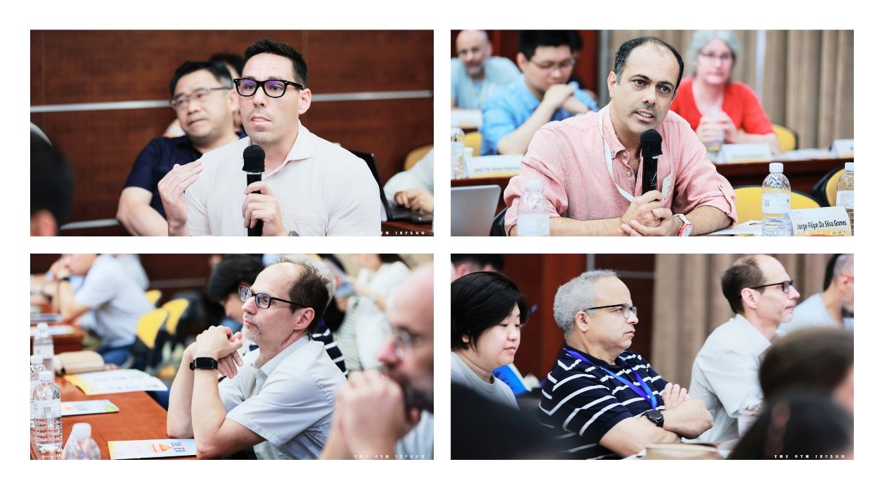 在主题演讲环节,瑞士卡莱多应用科学大学的Markus Prandini教授以“AI时代的教育--生成式人工智能如何重塑高等教育”为题,线上分享了AI时代下生成式人工智能对于高等教育的影响;斯凯孚荷兰研发中心Zhou Xiaobo教授分享了题为“面向大学生的创新教学方法:结合MBA技能和个人发展,助力未来成功及案例研究”的报告;英国罗伯特戈登大学的ChanTakYeeAndy教授作了题为“大学教育4.0”的报告;新西兰奥克兰大学的Manfredo Manfredini副教授以“创新教育法:整合新技术和关系式参与,为设计学科的跨文化、转换式和跨学科协作提供未来保障”为题,分享了观点;上海交通大学孙婷副教授进一步发表了关于“整合人工智能与数据驱动方法的课程体系开发:一项战略举措”的看法。爱尔兰科克大学教学副校长PaulMcSweeney教授线上做了主题为“生成式人工智能时代下的学术诚信”的精彩报告。