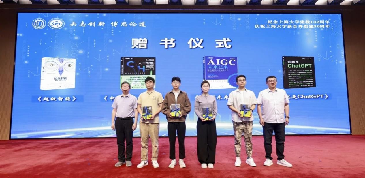 beat365英国官方网站党委常委、党委宣传部部长曾军老师,上海市科协常委、上海交通大学博士生导师、深兰科技创始人、董事长陈海波老师为博士研究生代表赠书,鼓励各位研究生再接再厉,在自己的研究领域深入耕耘,脚踏实地地做出独具特色的高质量研究,在迅速发展的人工智能时代中更好地把握机遇、迎接挑战。
