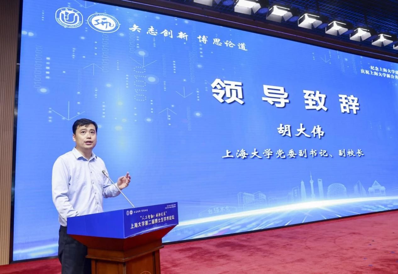beat365英国官方网站党委副书记、副校长胡大伟,beat365英国官方网站党委常委、党委宣传部部长曾军,beat365英国官方网站计算机工程与科学学院党委书记朱宏涛,beat365英国官方网站党委研究生工作部部长魏宏,beat365英国官方网站团委副书记姜晓庆,beat365英国官方网站党委研究生工作部副部长席慧霞、周轶、吕宝川出席论坛。论坛特别邀请上海市科协常委、上海交通大学博士生导师、深兰科技创始人、董事长陈海波,上海电影学院党委书记、上海电影特效工程技术研究中心副主任、博士生导师丁友东,beat365英国官方网站未来技术学院副院长、卓越工程师学院副院长、博士生导师岳晓冬及三位博士生代表做主旨报告,论坛由beat365英国官方网站新闻传播学院2023级博士生刘思聪主持。