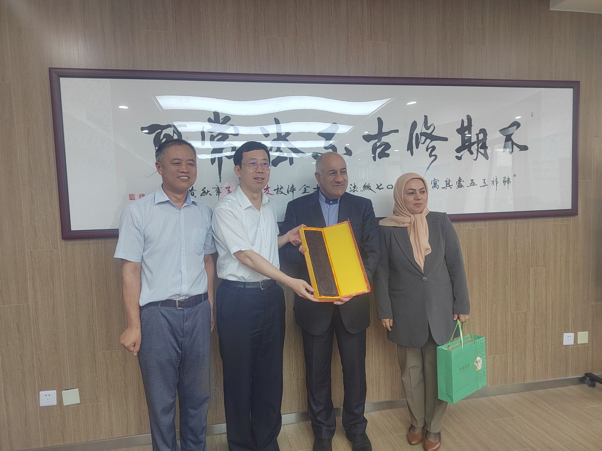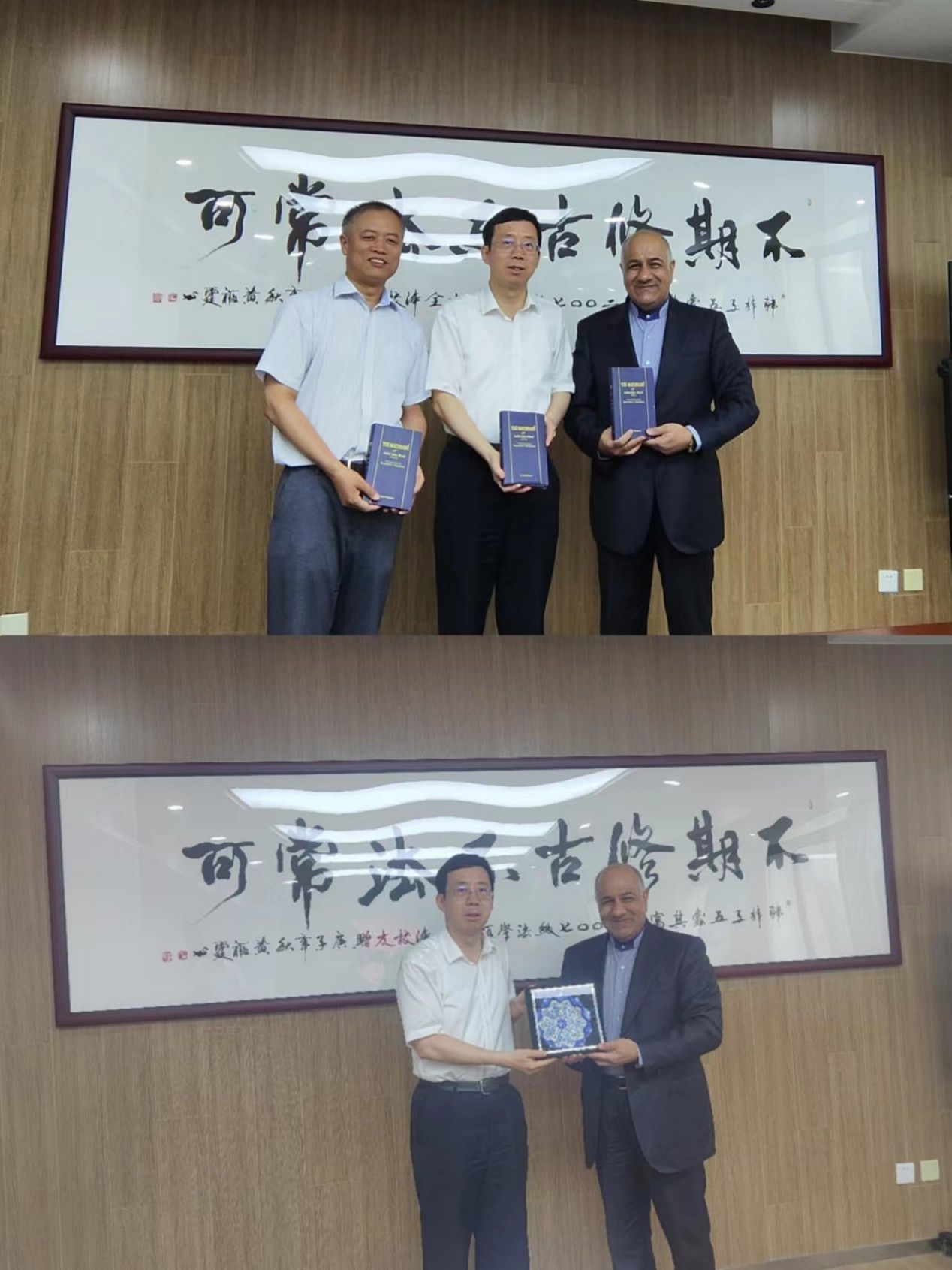 beat365英国官方网站向伊朗国际关系学院赠送纪念品和百年上大书籍。