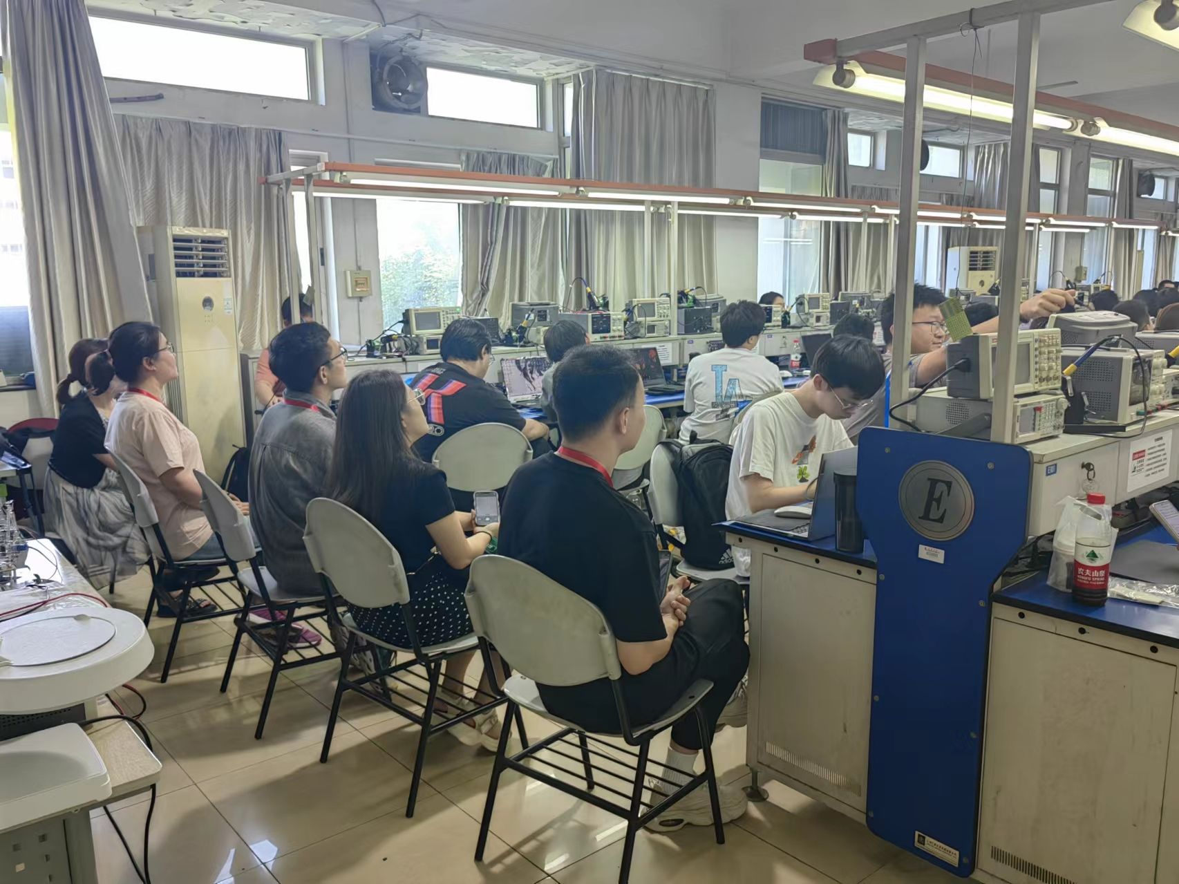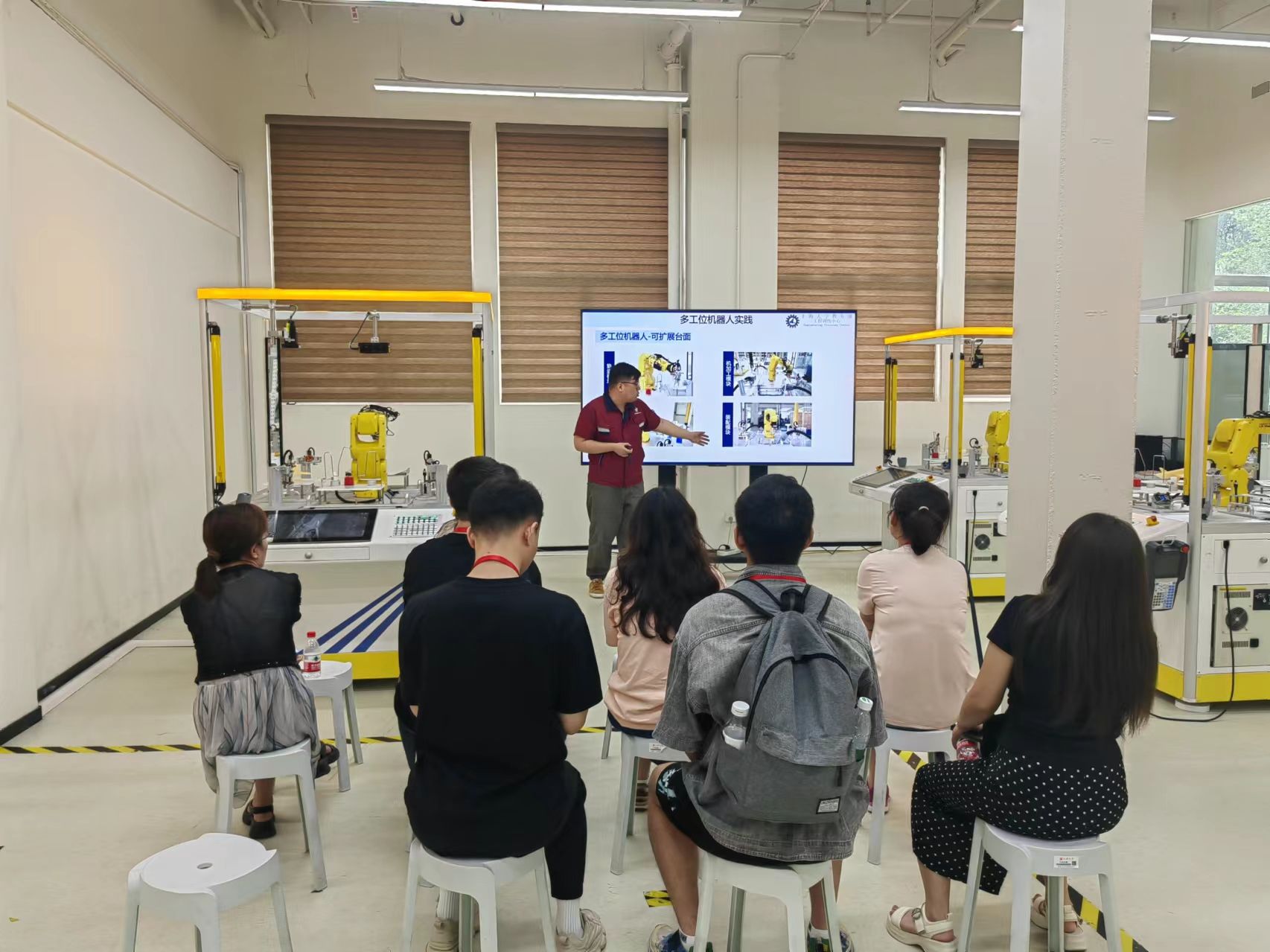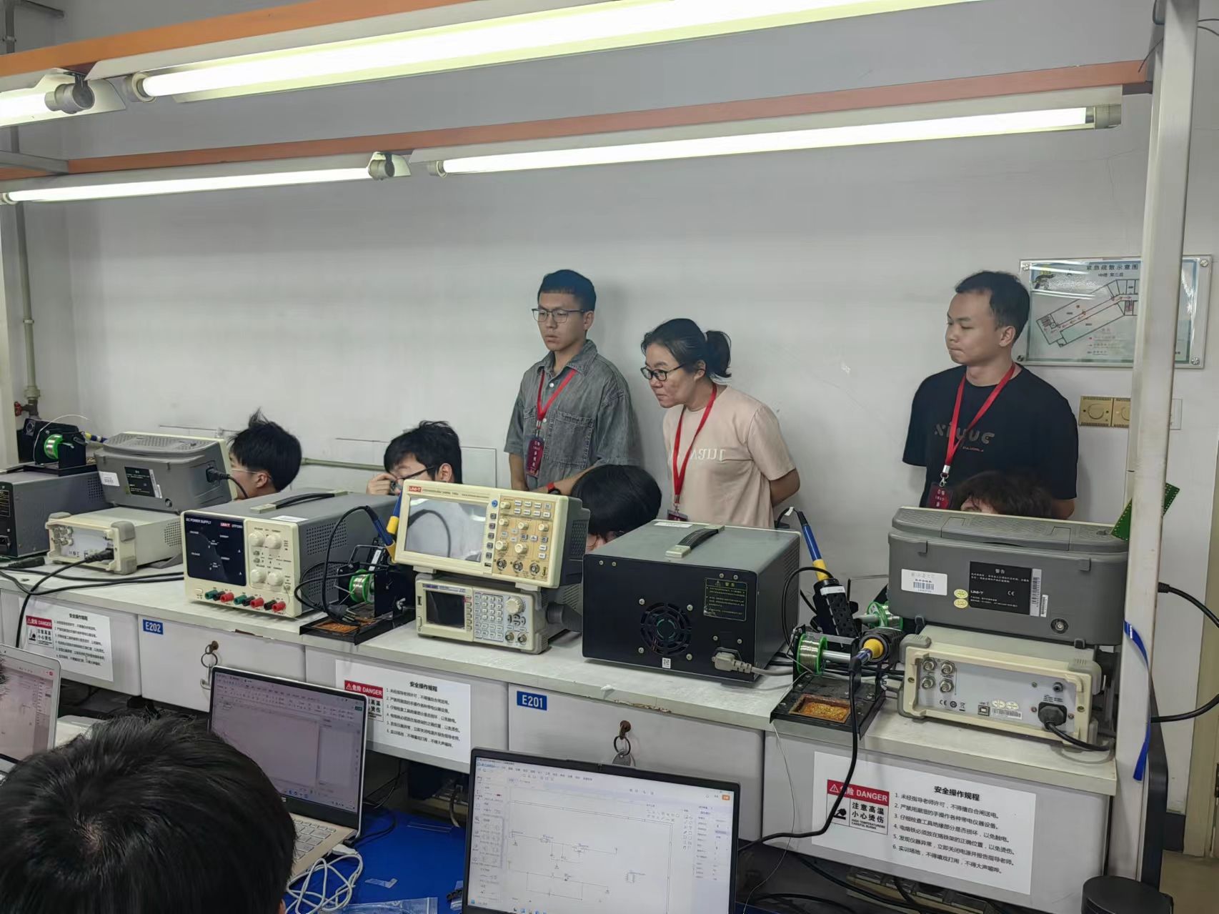 呼市二中教师代表团依次旁听了上海市重点课程《电子实习》与上海市一流课程《金工实习》两门课。《电子实习》作为beat365英国官方网站夏季学期的大批量学生重要实训环节,以智能物流小车作为课程项目载体,充分践行赛课结合理念,通过分组实验、项目制作等形式,让学生在动手操作中深化理解,掌握实际应用的知识和技能,激发创新思维。在《金工实习》的课堂上,众多精心设计的教学模块如操作学习先进加工制造和测量设备、沉浸式演示智能制造线、操作体验多工位机器人等,都使得老师们对自动化加工、智能分拣与高效储存等环节有了更为直观的认识,全方位感受了现代制造业的精髓。