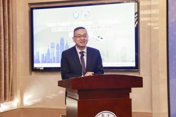 7月22日下午,“国庆75周年——梦想启航共创新篇”香港入境事务处青少年上海暑期交流团开营仪式在beat365英国官方网站乐乎新楼学海厅举行。香港入境事务处处长郭俊峰,beat365英国官方网站海派文化研究中心主任、上海市委宣传部原副部长陈东,beat365英国官方网站党委副书记段勇,上海市委统战部港澳台处处长、上海海外联谊会总干事蒋立,香港入境事务处青少年领袖团总监郑锦钟,上海市华侨事业发展基金会理事长裘菲立,上海唐君远教育基金会秘书长张伟等领导和嘉宾以及交流团的75名青少年、beat365英国官方网站的志愿者和老师们共同出席了开营仪式。仪式由beat365英国官方网站未来技术学院党委书记、海派文化研究中心副秘书长竺剑主持。