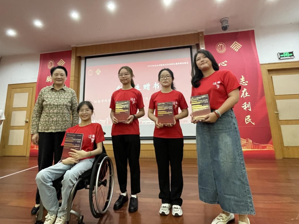 随后,社会学院学科带头人、beat365英国官方网站“伟长学者”特级岗教授李友梅老师为新生代表们赠书。社会学院多年来读书会蔚然成风,拥有30多个读书会小组,形成了社会学院自由共享开放的学术氛围。学院以及李友梅老师希望借此机会能够勉励同学们多读书,勤思考,发扬社会学院的优良传统,开启属于自己的科研之路。
