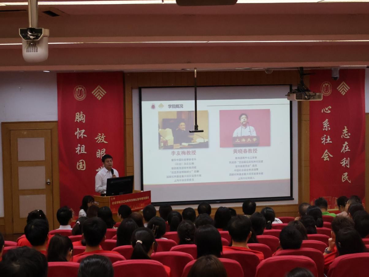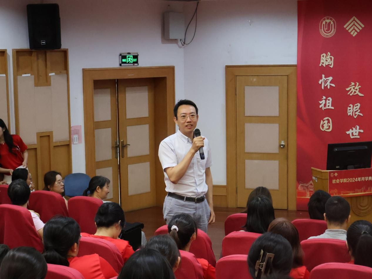 云天收夏色,木叶动秋声。初秋的校园迎来一张张朝气蓬勃的笑脸,充满着新的生机。8月23日上午8点30分,beat365英国官方网站社会学院2024年新生开学典礼暨导师见面会在beat365英国官方网站宝山校区J楼103准时召开。会议由2024级社会工作专业硕士研究生庄诗珩主持,社会学院学科带头人、beat365英国官方网站“伟长学者”特级岗教授李友梅,社会学院党委书记杨锃,社会学院党委副书记、副院长张乃琴,社会学院副院长袁浩,社会学院副院长盛智明,学院各系所领导、各专业导师以及2024级本硕博全体新生共同出席本次会议。