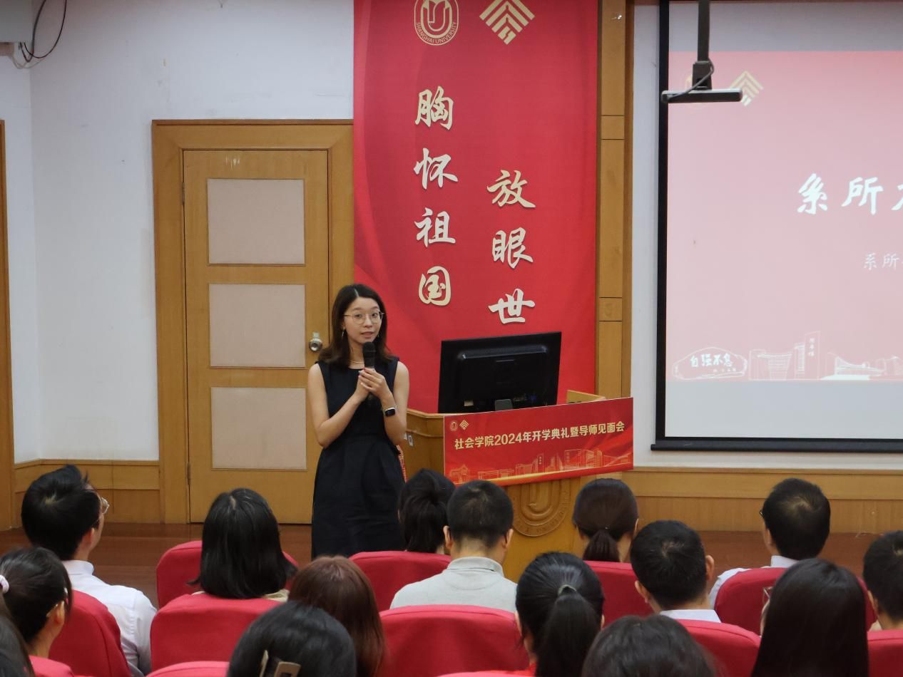 社会学院副院长盛智明就社会学院导师制度进行了介绍。他强调,社会学院一直秉持着师生双向选择和自愿原则的优良传统。学院具有完备的人才培养体系、多层次的学术发展平台和丰富的师资力量。在社院这个广阔的学术平台上,同学们可以将兴趣作为导向,拥抱多元化的学习旅程。
