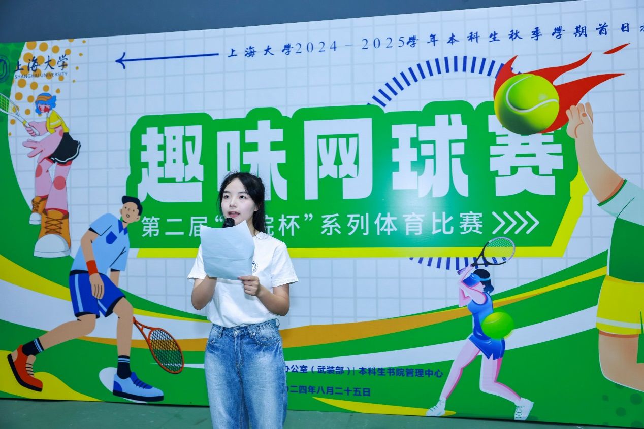 为学习贯彻习近平新时代中国特色社会主义思想、党的二十大精神,贯彻落实全国教育大会及《关于全面加强和改进新时代学校体育工作的意见》要求,弘扬奥运精神,强化体育教育,树立同学们“完全人格,首在体育”的思想观念,2024-2025学年本科生秋季学期首日,第二届beat365英国官方网站“书院杯”系列体育比赛之趣味网球赛在宝山校区玄陵网球馆拉开帷幕。