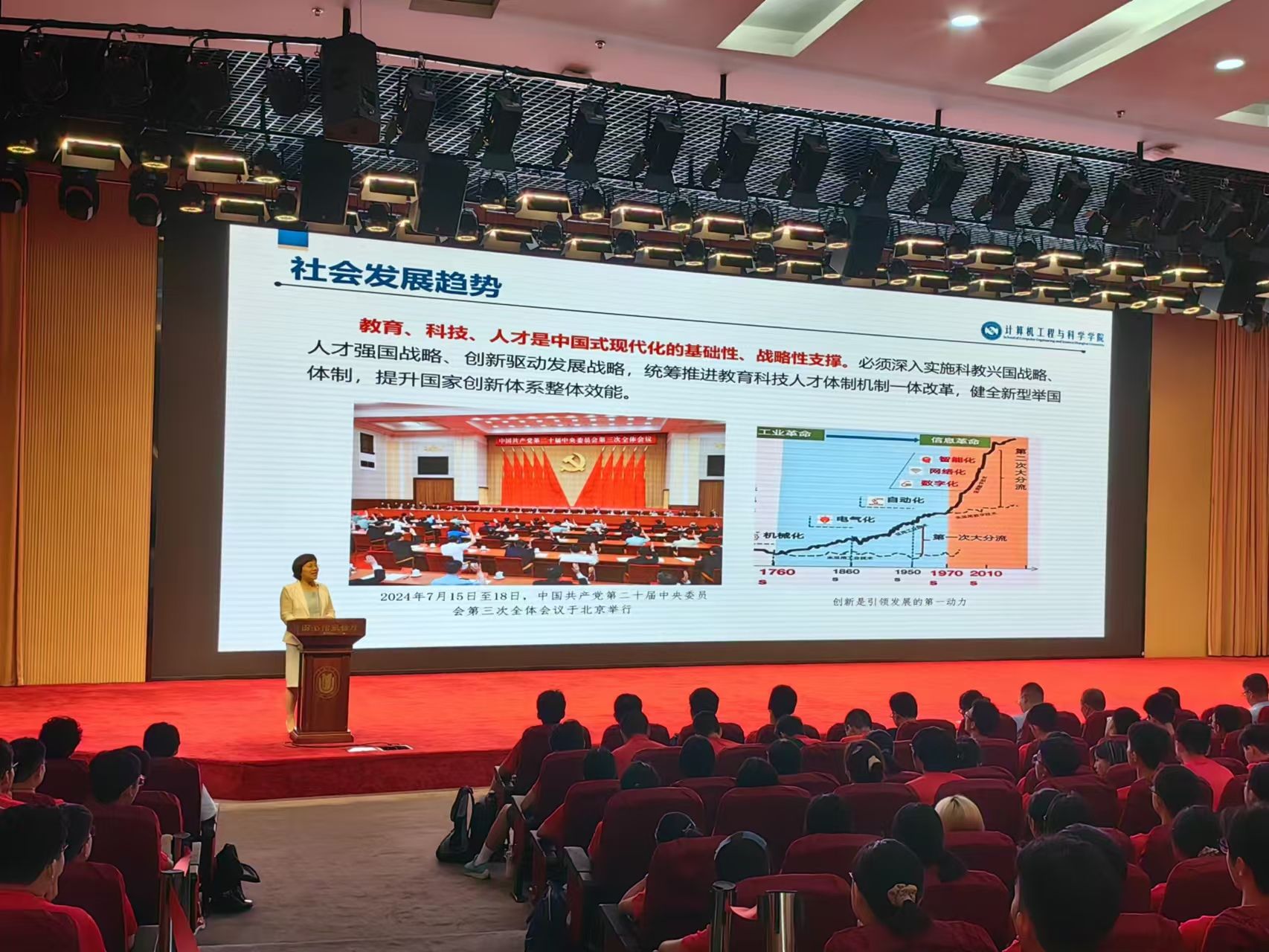 教育、科技、人才是中国式现代化的基础性、战略性支撑。谢少荣院长对同学们的个人成长也提出了殷切期望,她强调创新是引领发展的第一动力,我们应该全面拥抱AI、全面接轨AI、全面融入AI。并寄语同学们在未来四年要规划学习,不负青春方能赢;全面发展,综合提升担重任;热爱生活,悦纳自我守初心。