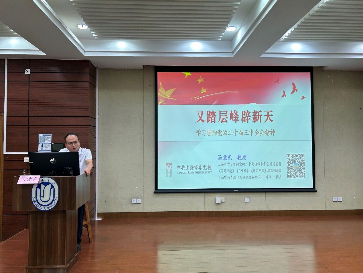汤荣光教授以“又踏层峰辟新天——学习贯彻党的二十届三中全会精神”为主题,从开辟中国式现代化前景、标注时代的改革新蓝图、新征程上的纲领性文献三个方面进行了详细解读。他强调党的二十届三中全会通过的《决定》,既是党的十八届三中全会以来全面深化改革的实践续篇,也是新征程推进中国式现代化的时代新篇,具有重大的理论意义、实践意义和时代意义。